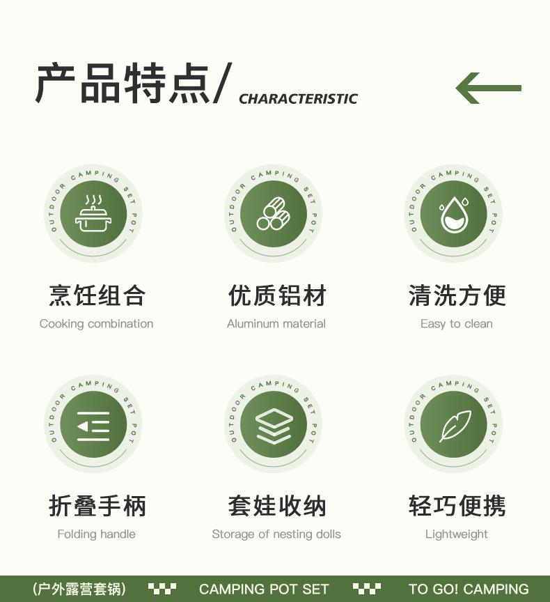 Conjunto de Panelas para Exterior Portátil para Camping Piquenique Panela Pequena, Média e Grande Panela para Pendurar Frigideira Chaleira Conjunto Combinado Utensílios de Cozinha Portáteis