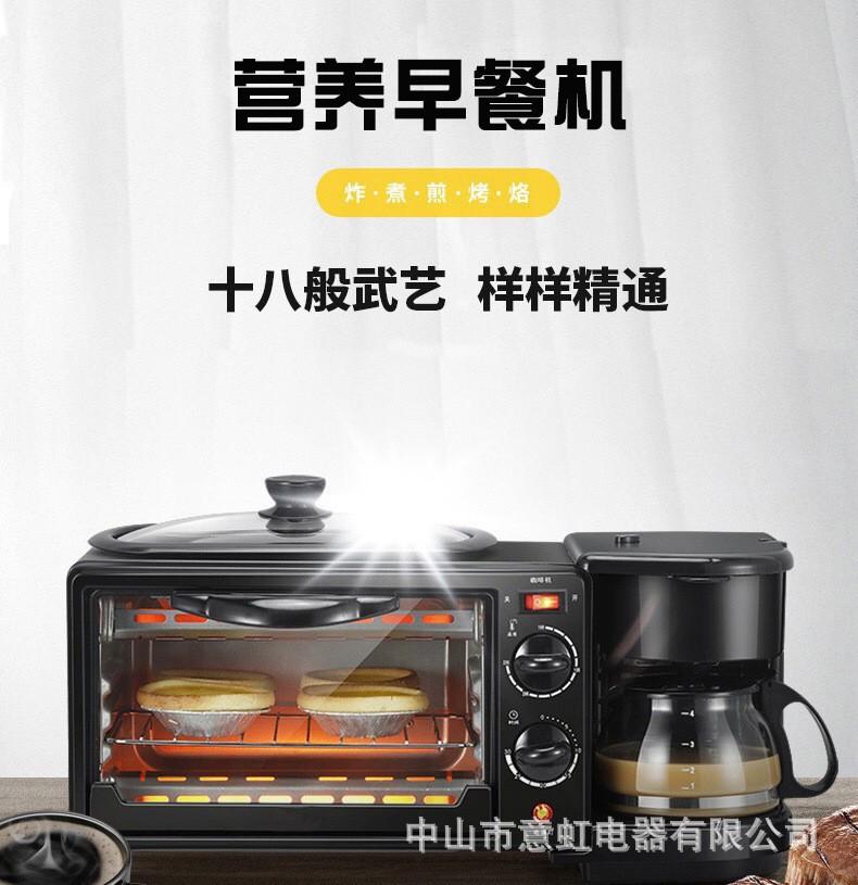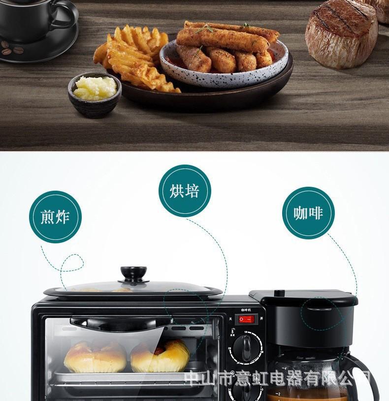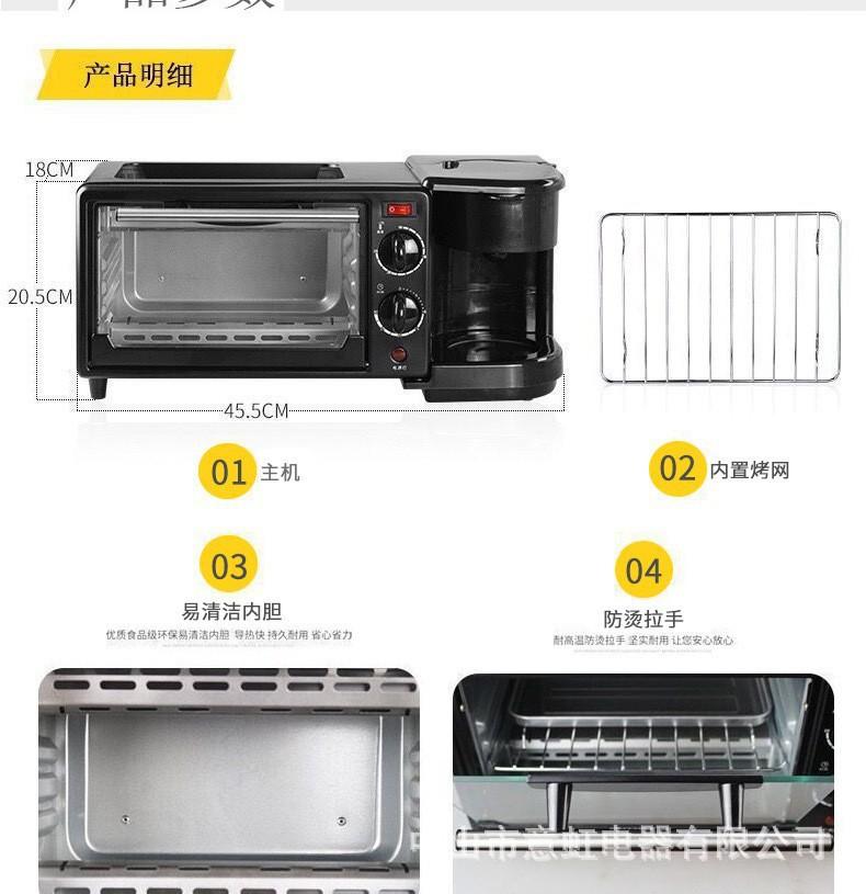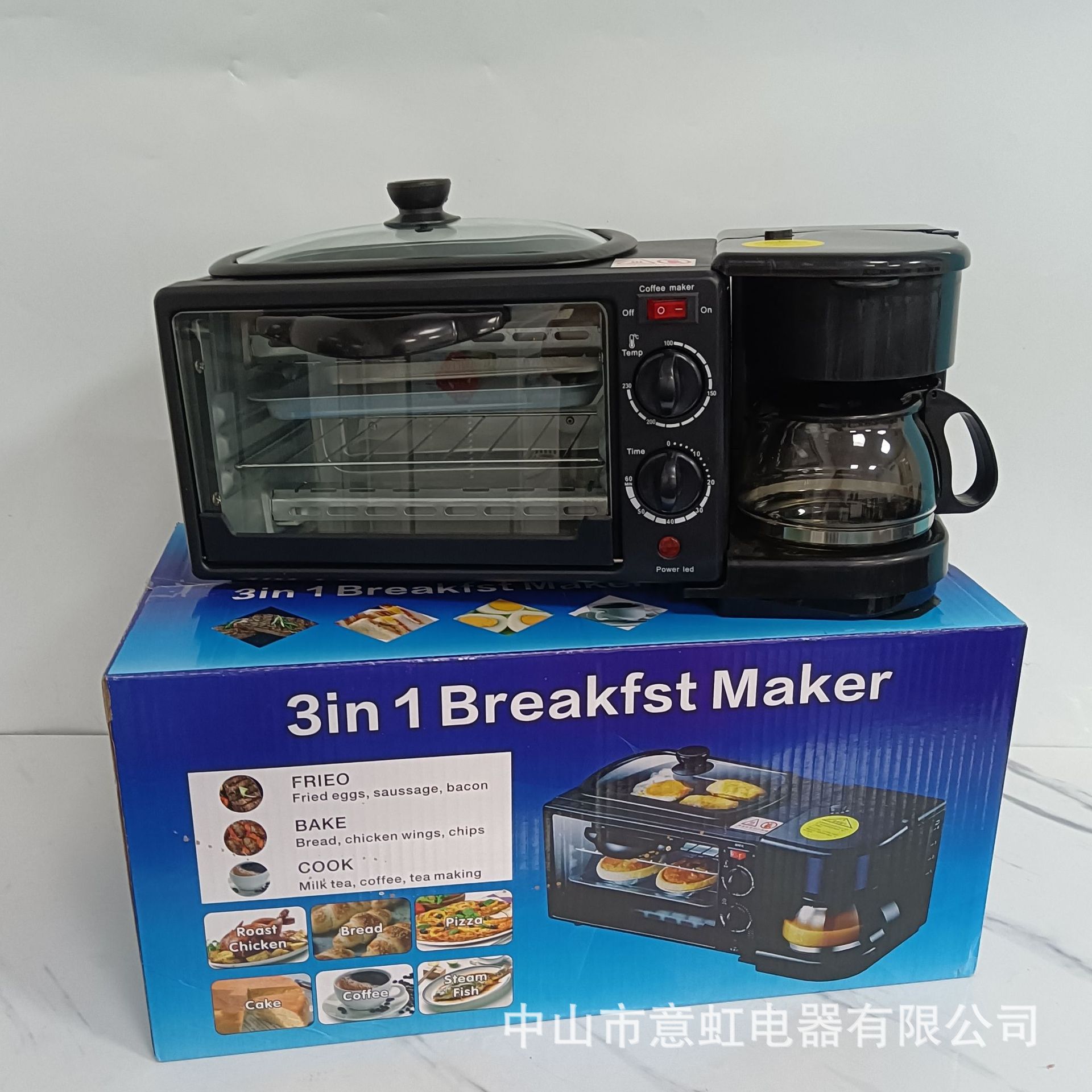 Máquina de café da manhã multifuncional em inglês transfronteiriça, fritadeira e cozimento doméstico, máquina de café três em um, forno, torradeira