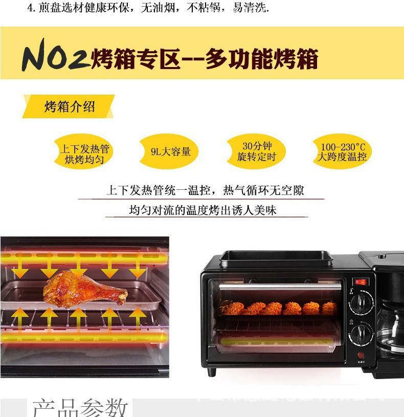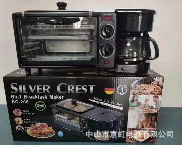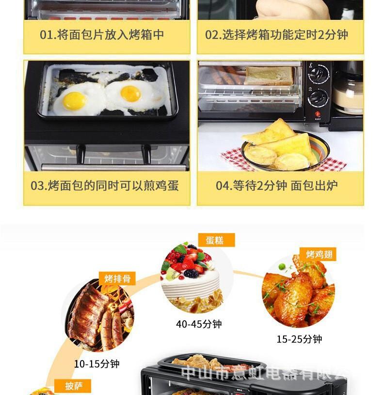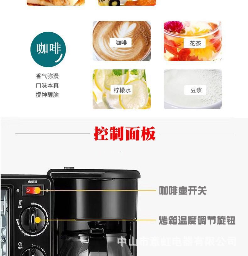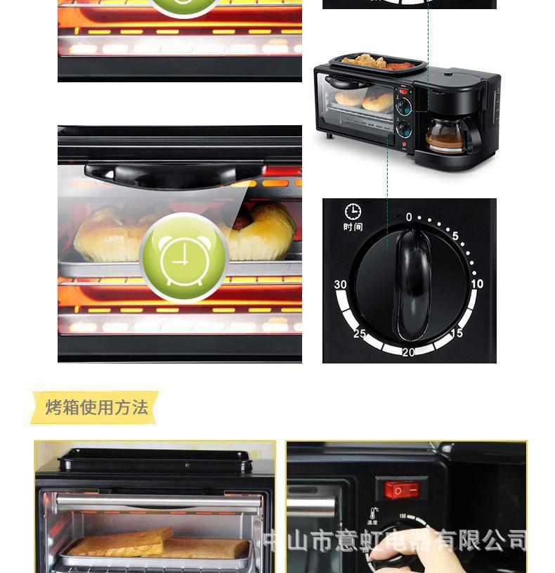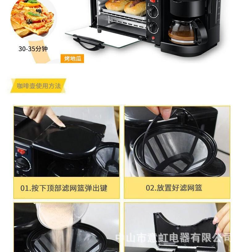 Máquina de café da manhã multifuncional em inglês transfronteiriça, fritadeira e cozimento doméstico, máquina de café três em um, forno, torradeira