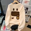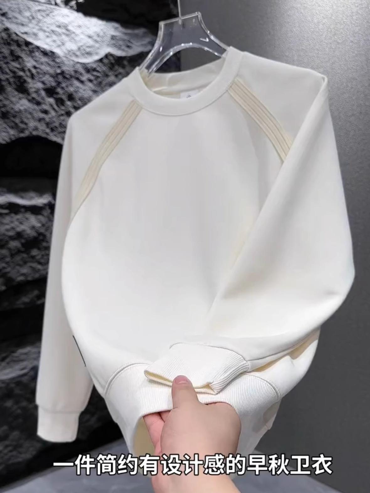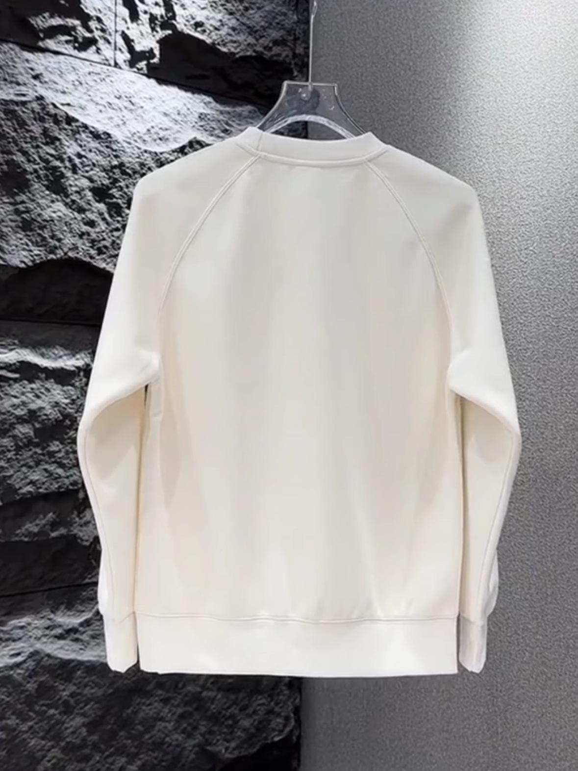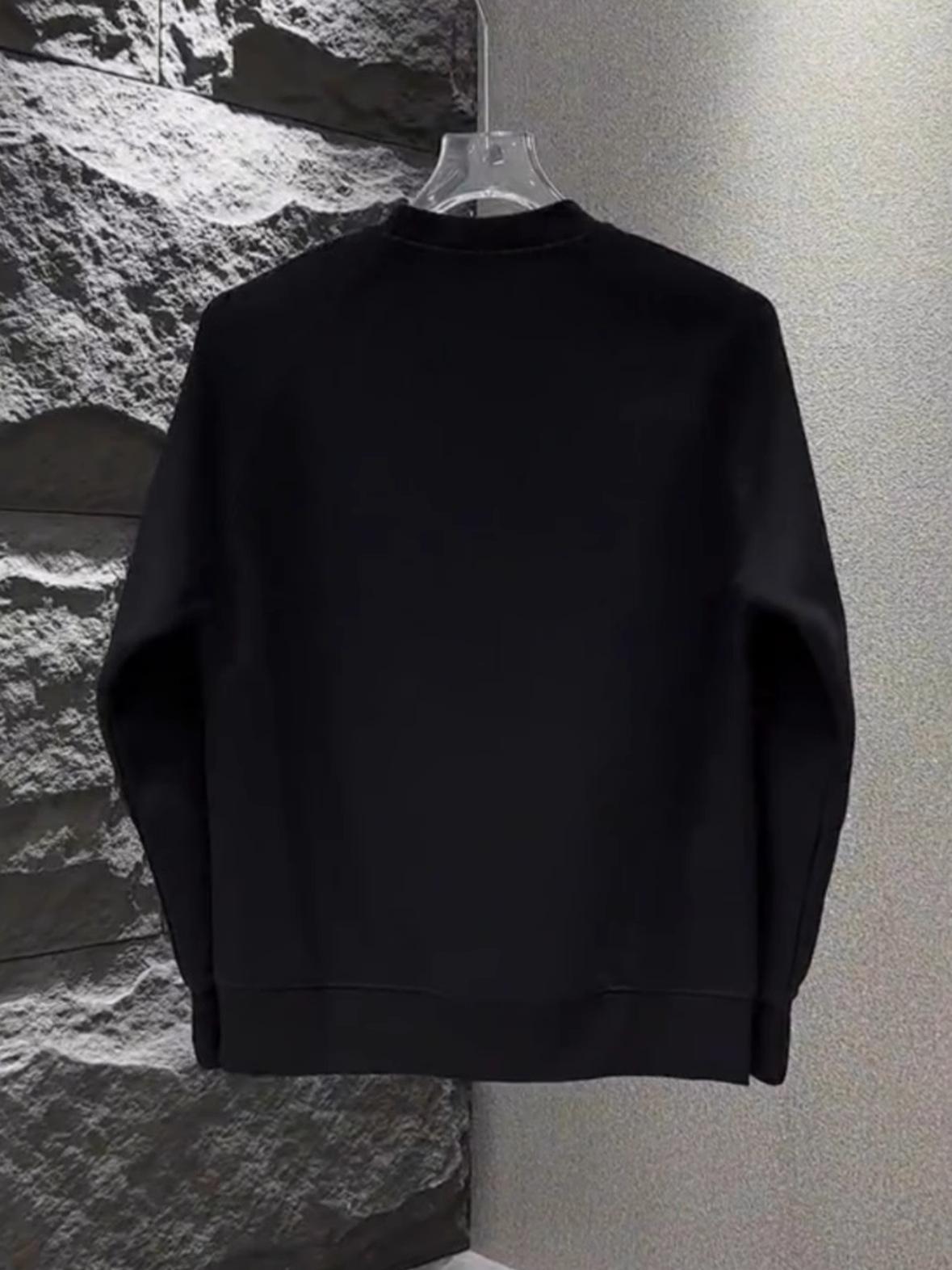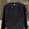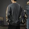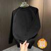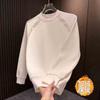 2024 outono e inverno novo masculino versátil moda casual costura pulôver gola redonda forrado de lã suéter cor sólida solto