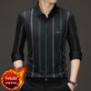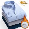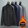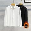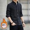 Camisa masculina de inverno com manga comprida e forro de lã, estilo coreano, slim fit, espessada, casual, cor sólida, não passável, camisa quente, jaqueta