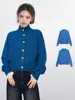 Suéter curto de malha azul meia gola alta feminino inverno engrossado outono e inverno pequeno estilo preguiçoso ombro casaco cardigan
