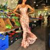 Vestido feminino europeu e americano primavera novo vestido transfronteiriço sexy saia deslizante estampada vestido longo vestido floral gola