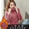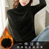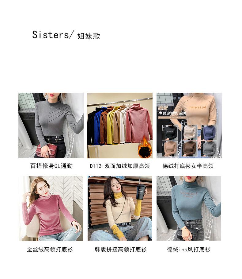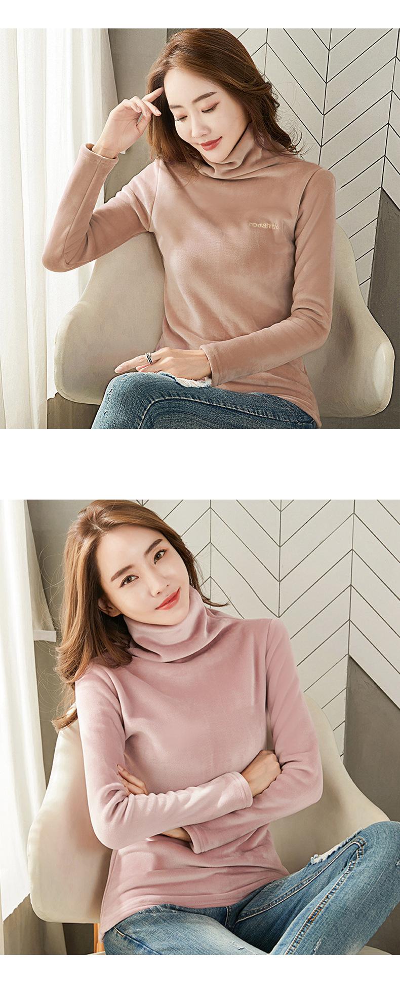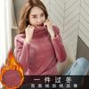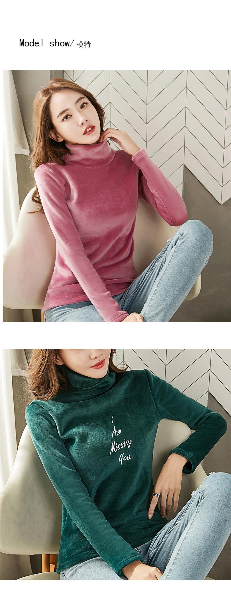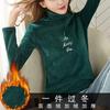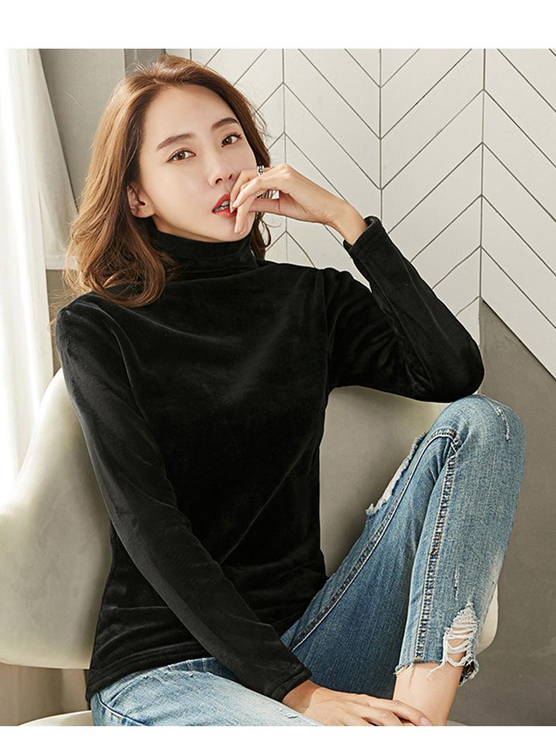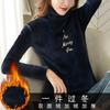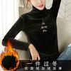 Camiseta de veludo dourado feminina gola alta outono e inverno 2022 novo estilo coreano solto interno bordado manga comprida base camisa top