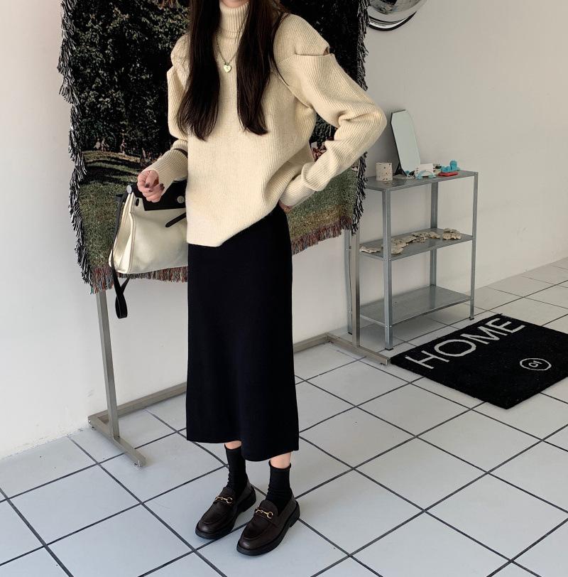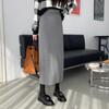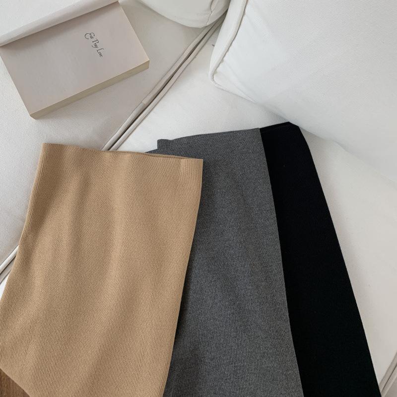 Saia de malha preta de comprimento médio feminina 2024 outono e inverno nova saia longa reta cintura alta em forma de A