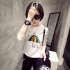 A019 Camiseta Feminina de Manga Longa de Desenho Animado para Primavera e Outono Top de Manga Longa Modelador