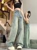 Jeans retrô de cintura alta feminino 2024 nicho novo solto emagrecimento perna reta perna larga calças