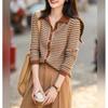 Suéter de base de lapela listrada feminino 2024 outono novo design senso preguiçoso manga comprida top suéter vintage