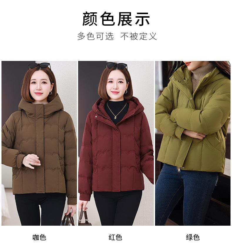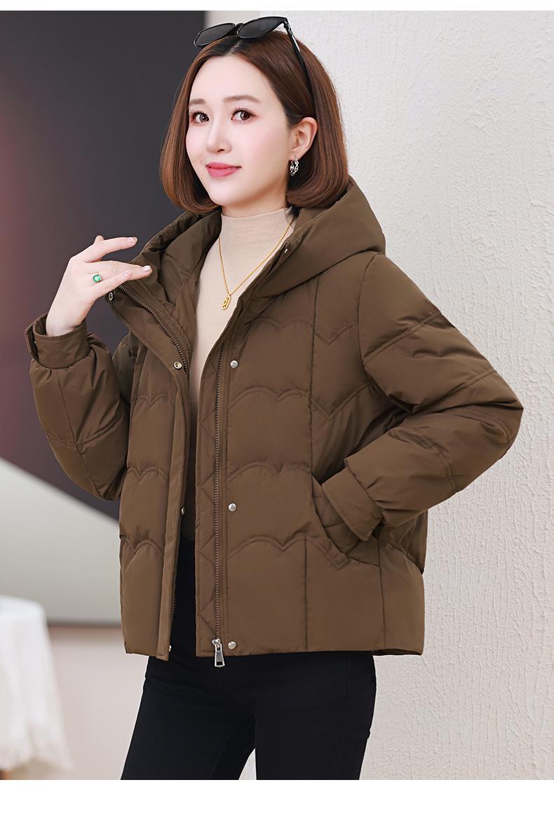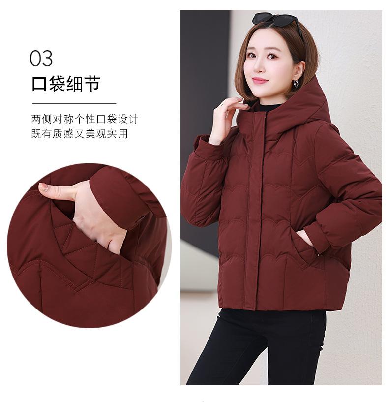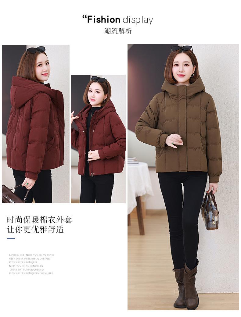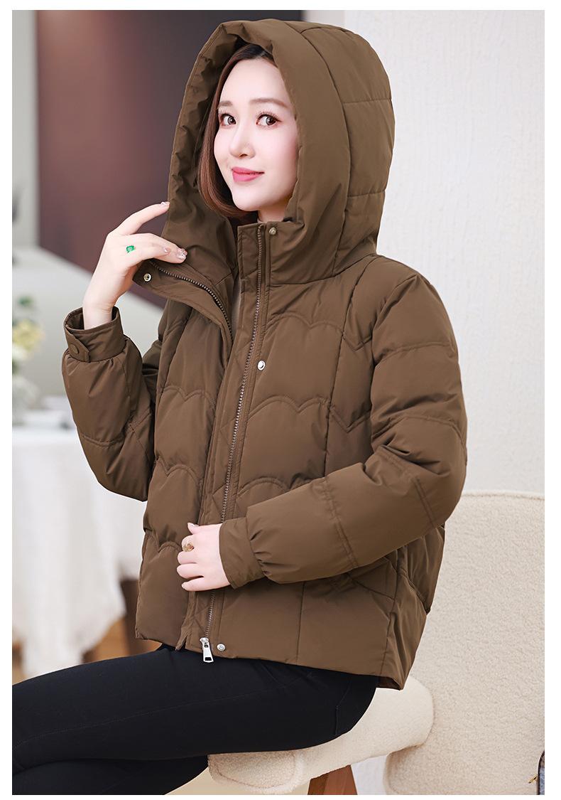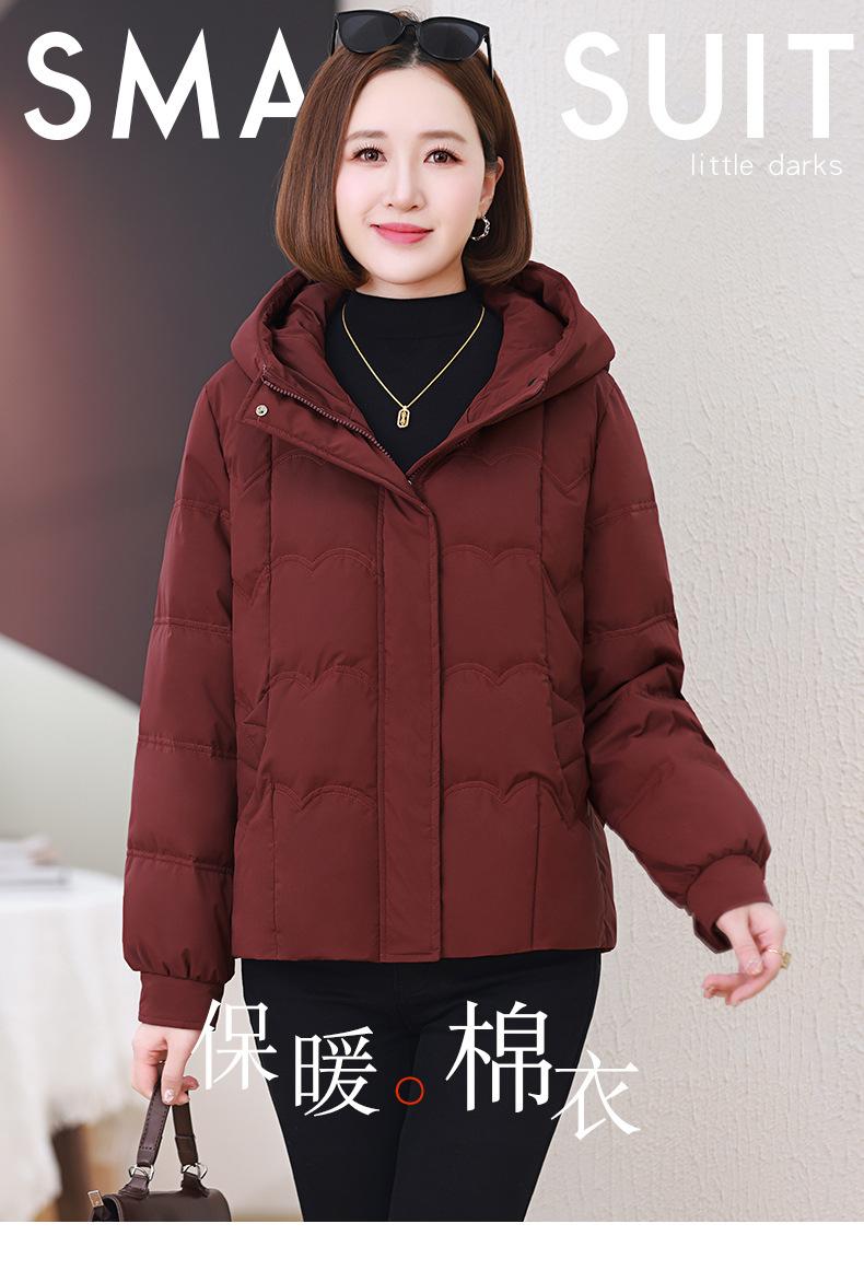 Casaco curto acolchoado de algodão com capuz grosso feminino 2024 inverno novo estilo estilo ocidental meia-idade mãe pequeno casaco acolchoado de algodão