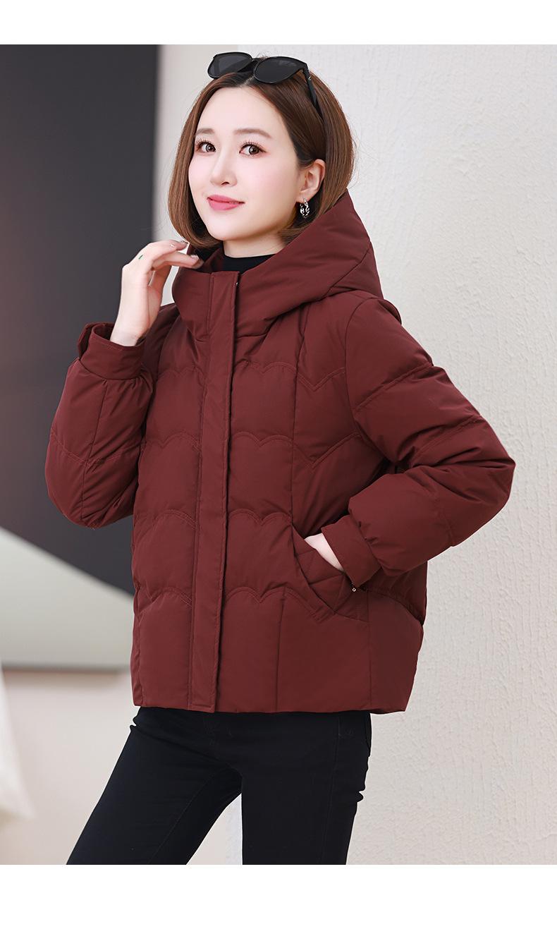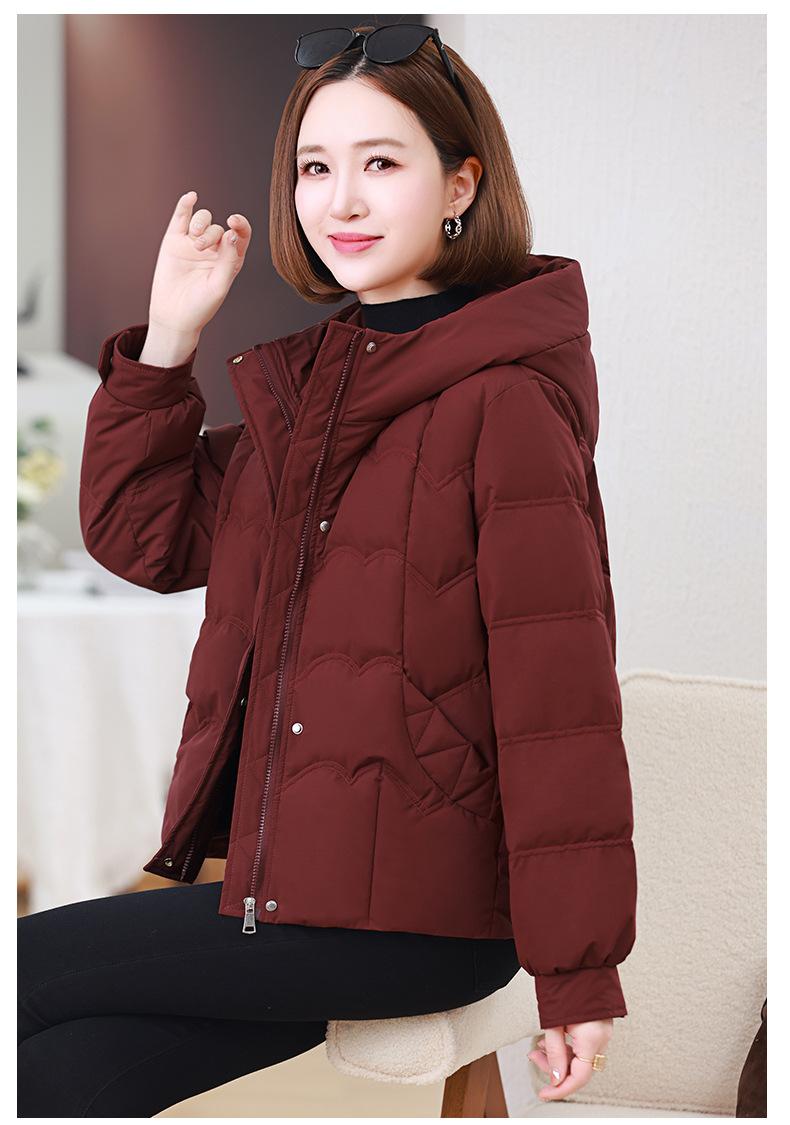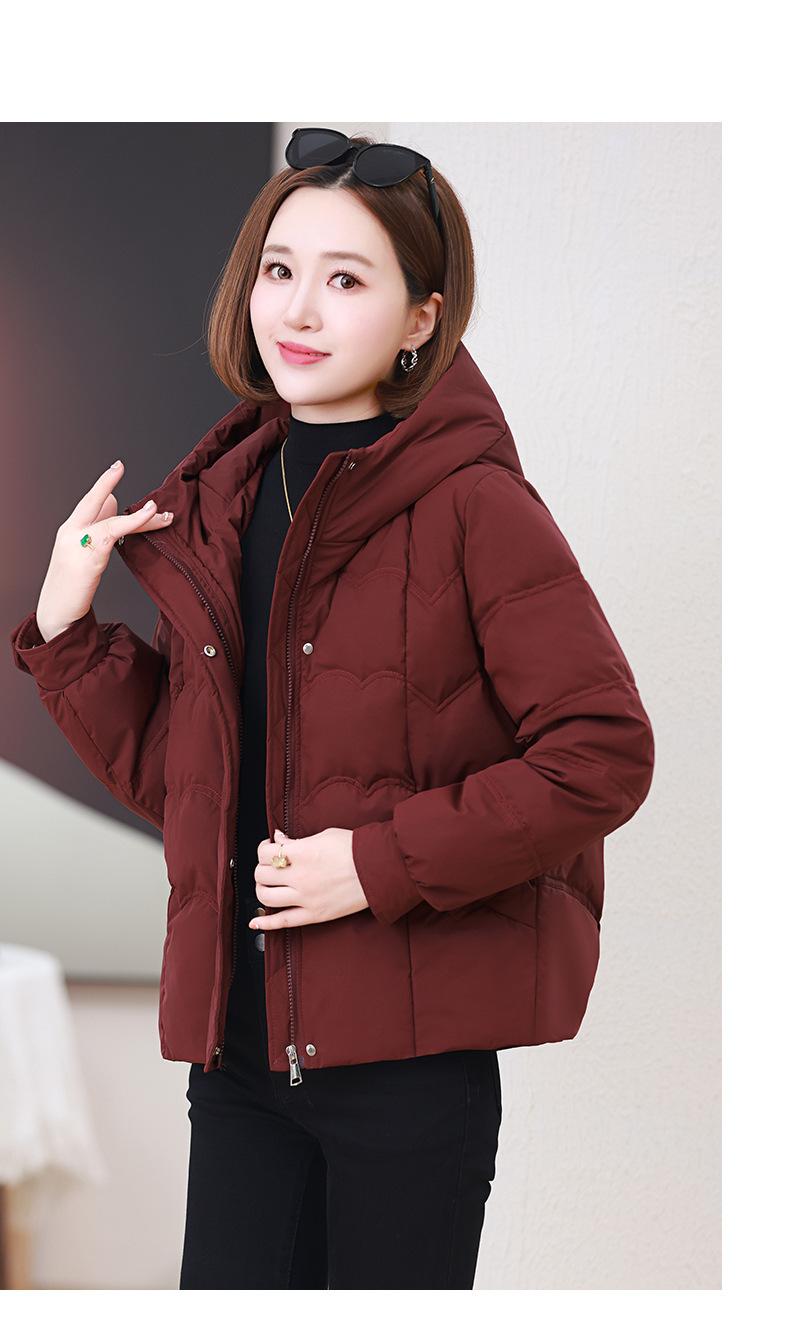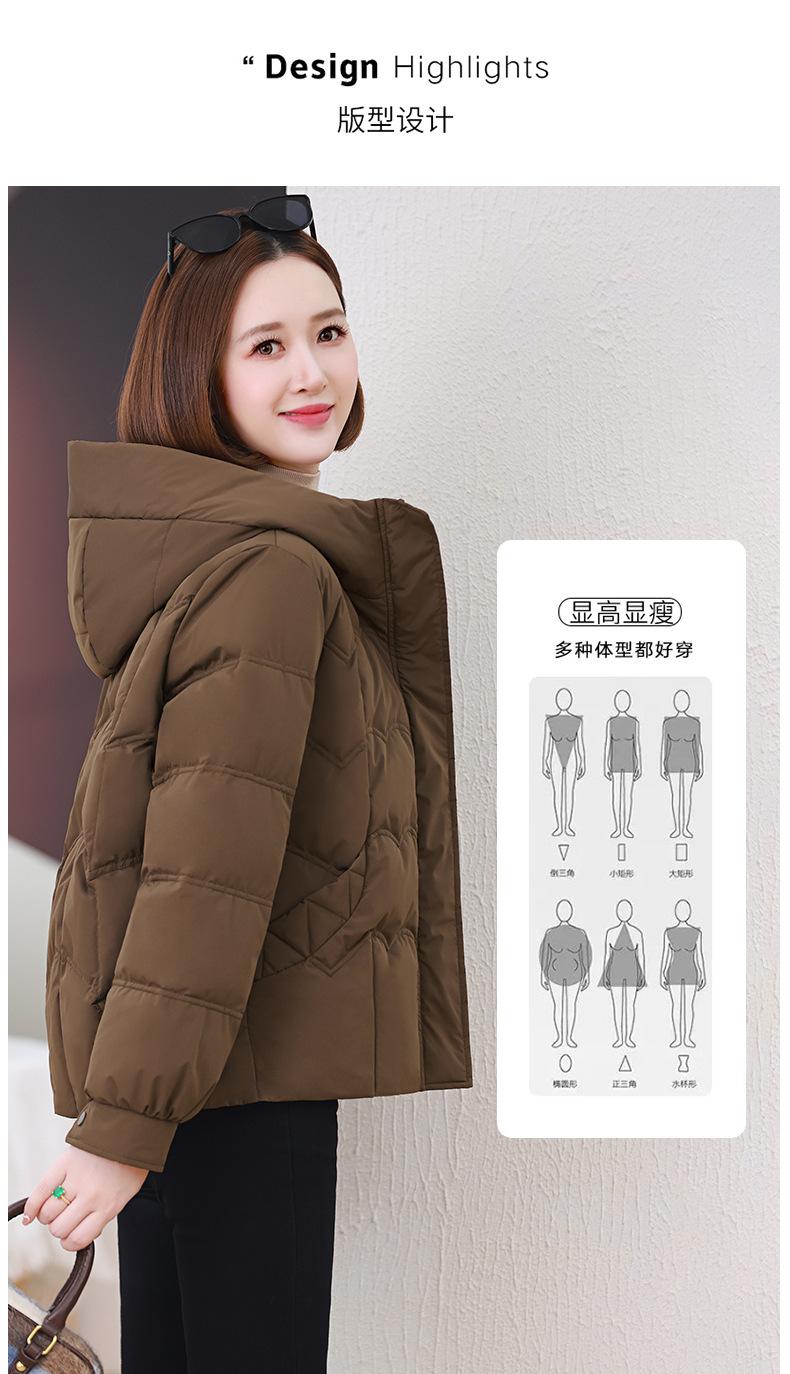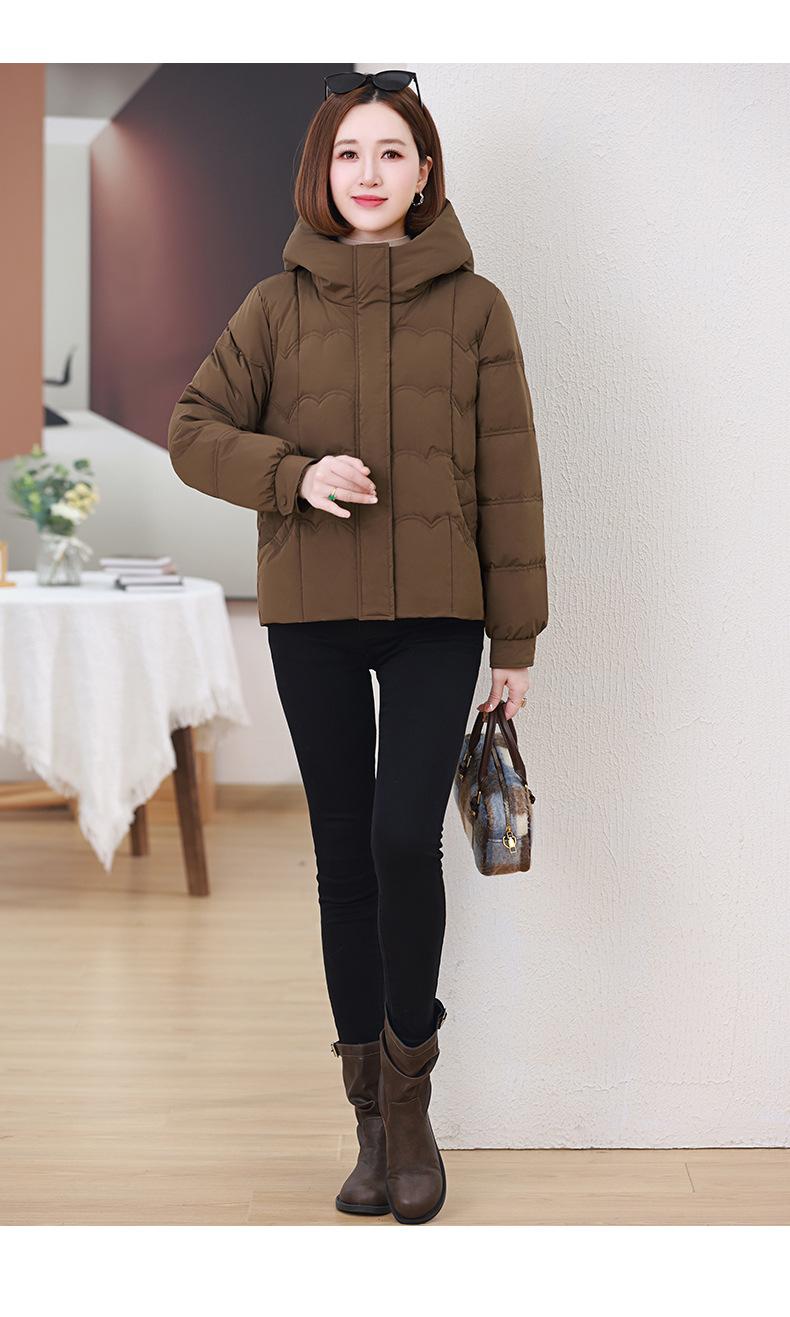 Casaco curto acolchoado de algodão com capuz grosso feminino 2024 inverno novo estilo estilo ocidental meia-idade mãe pequeno casaco acolchoado de algodão