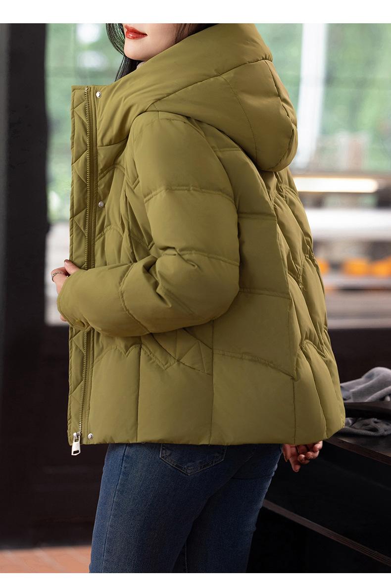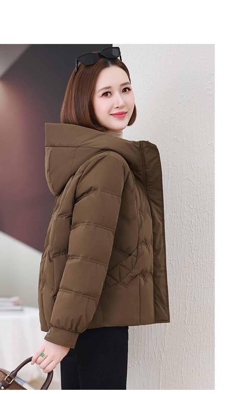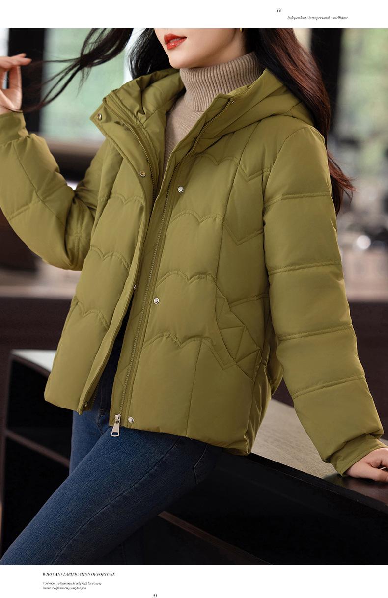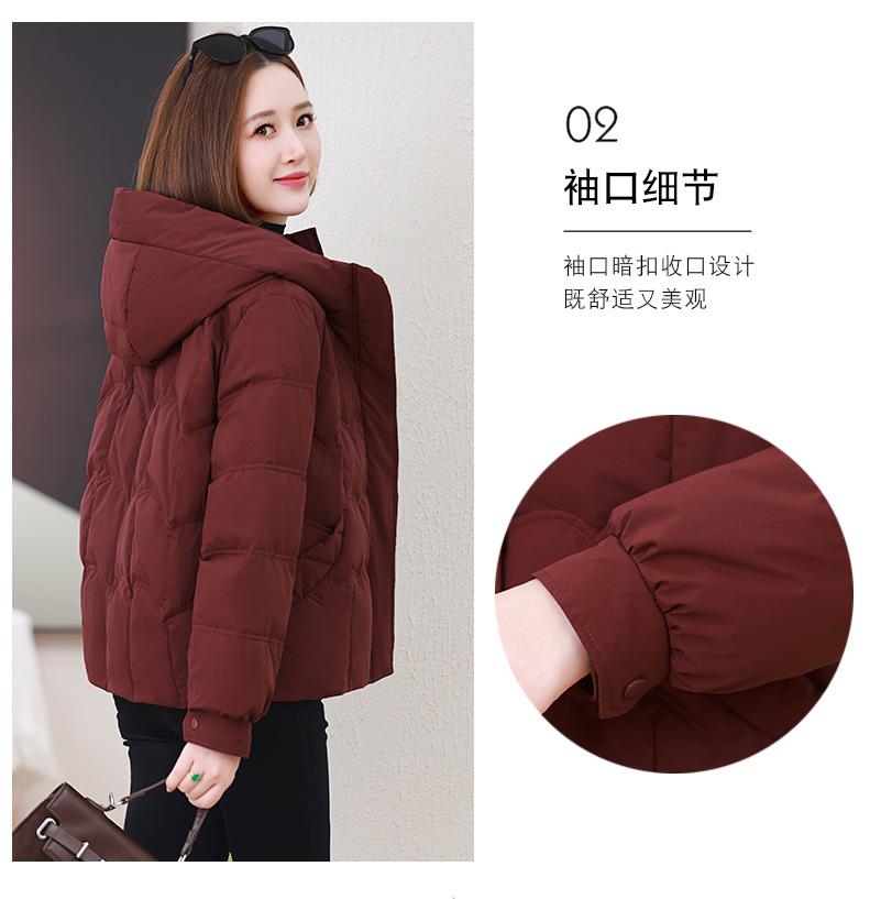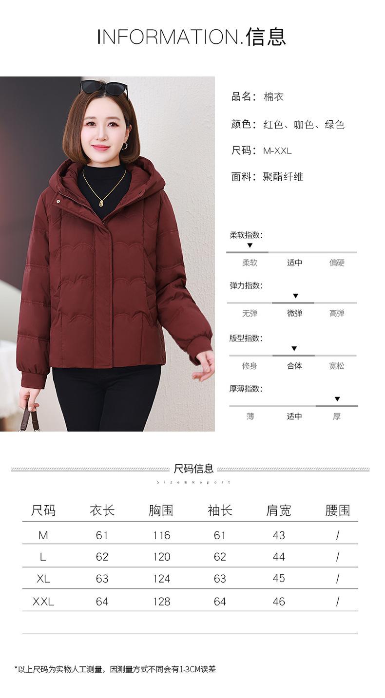 Casaco curto acolchoado de algodão com capuz grosso feminino 2024 inverno novo estilo estilo ocidental meia-idade mãe pequeno casaco acolchoado de algodão