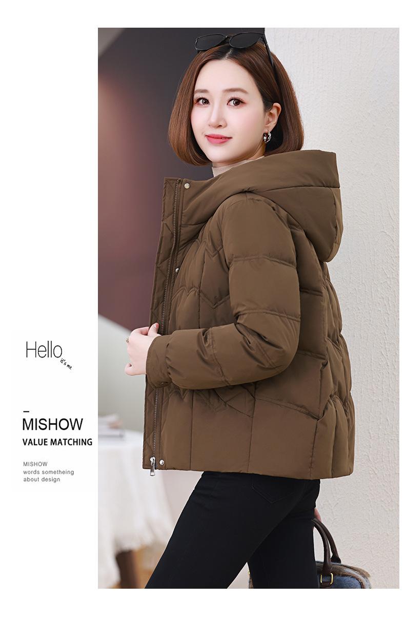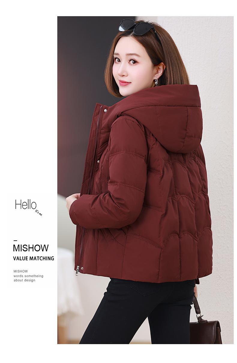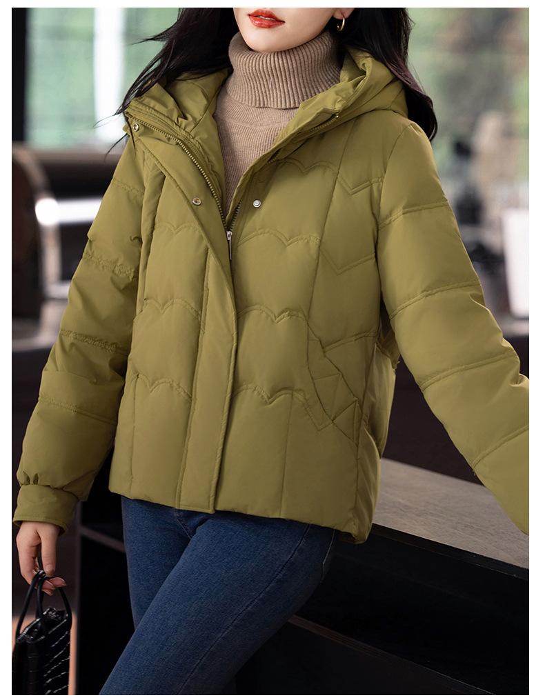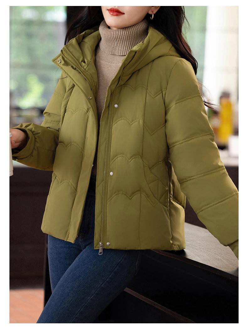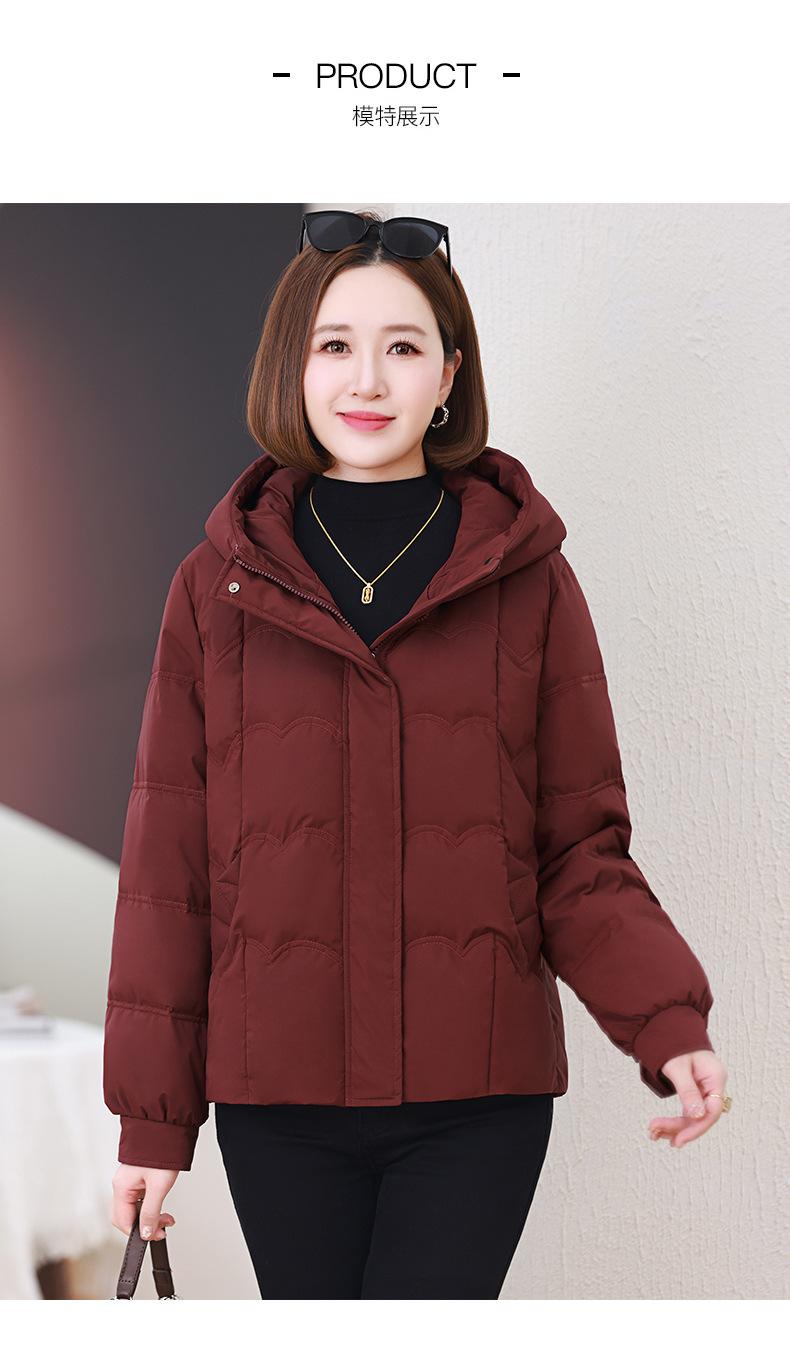 Casaco curto acolchoado de algodão com capuz grosso feminino 2024 inverno novo estilo estilo ocidental meia-idade mãe pequeno casaco acolchoado de algodão