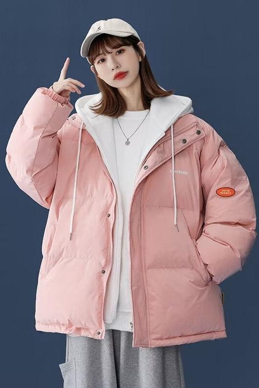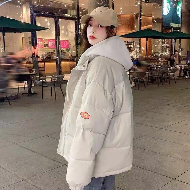 Compre Jaqueta acolchoada de algodão feminina 2024 inverno nova jaqueta solta acolchoada de algodão para estudantes jaqueta curta espessada com capuz fashion jaqueta falsa de duas peças acolchoada de algodão no atacado no Joom.pro