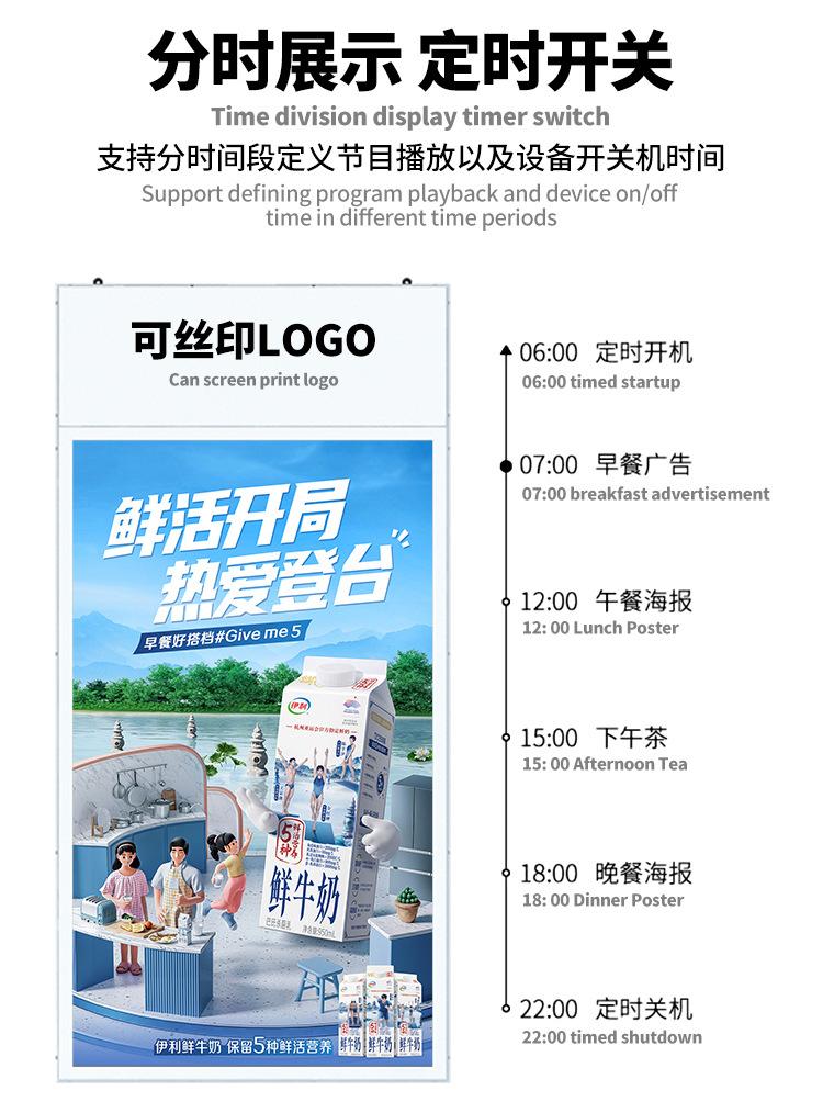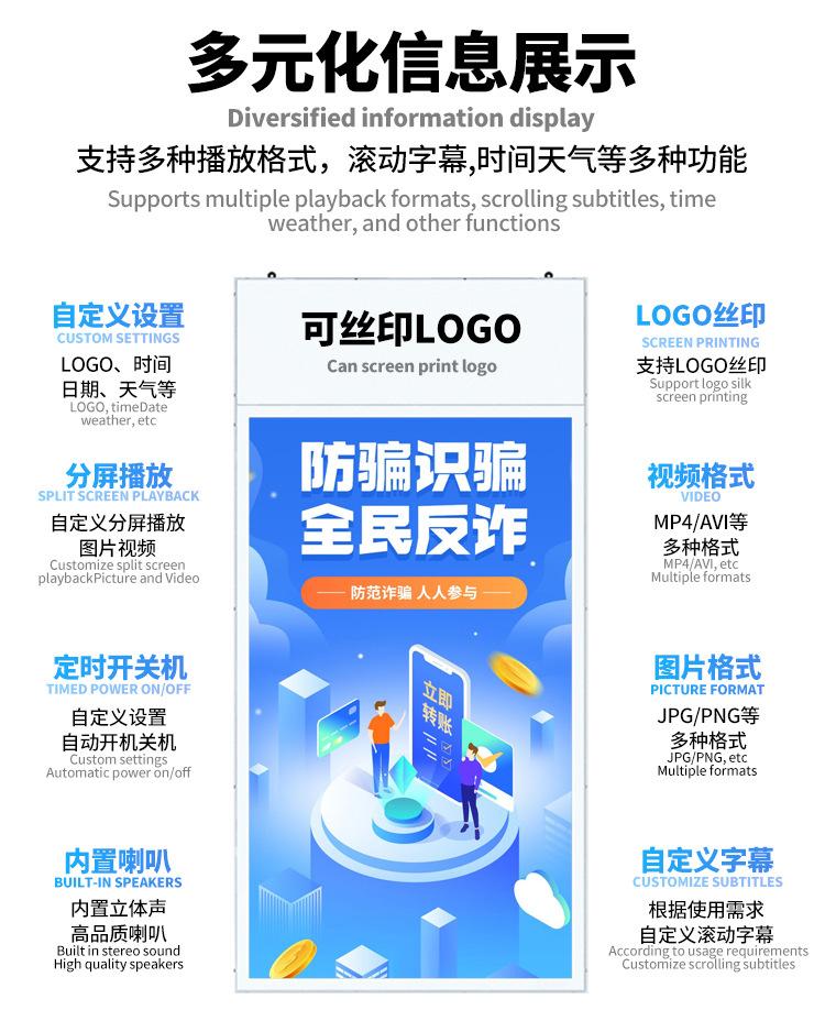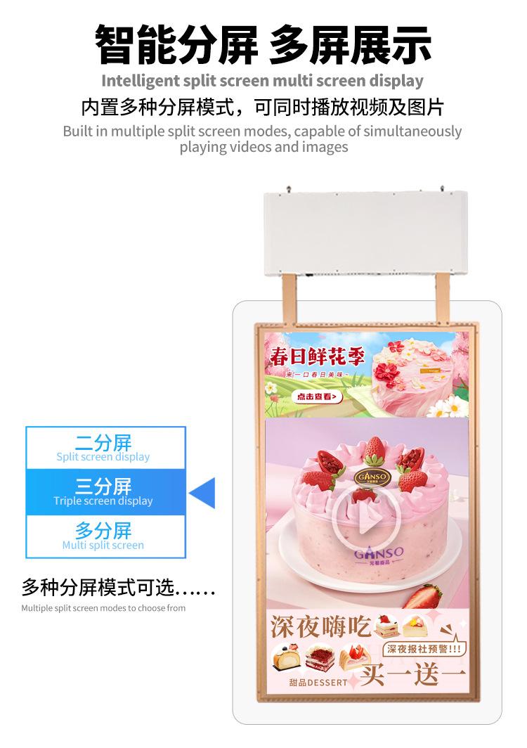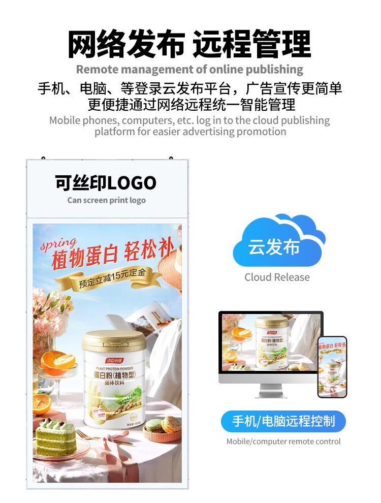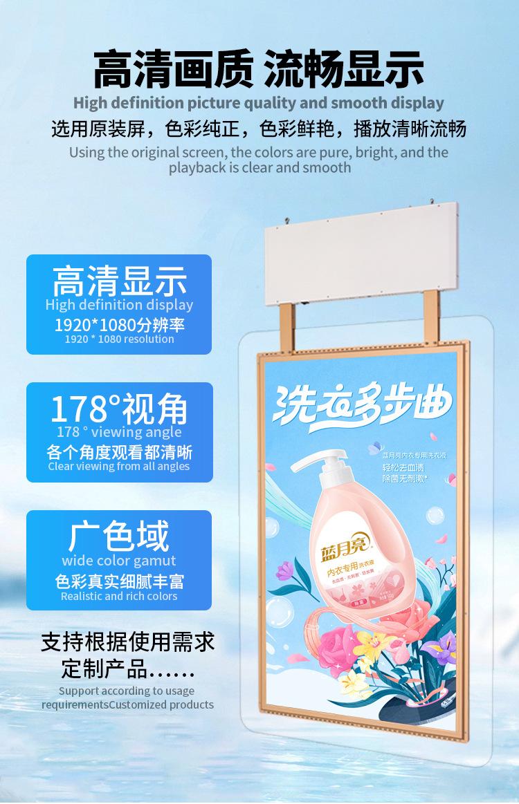 Máquina de propaganda dupla face suspensa de 43/50/55 polegadas, janela de loja de banco, tela transparente, ultrafina, tela dupla suspensa, máquina multifuncional