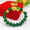 Pulseira Pixiu de Ouro Areia Vietnamita Esmeralda Pulseira de Contas de Ágata Verde Pulseira Unissex Joias Atacado