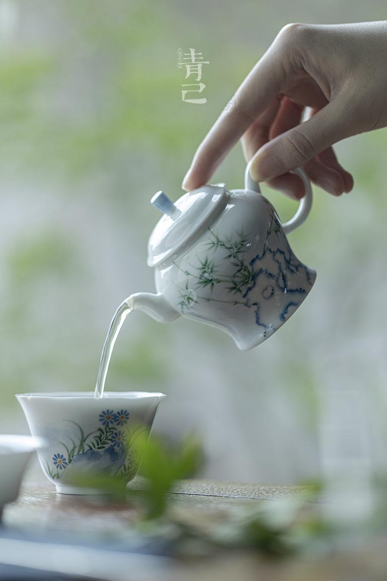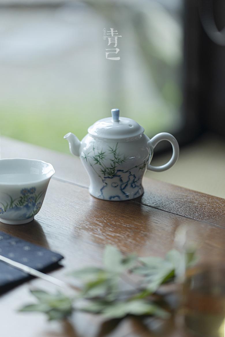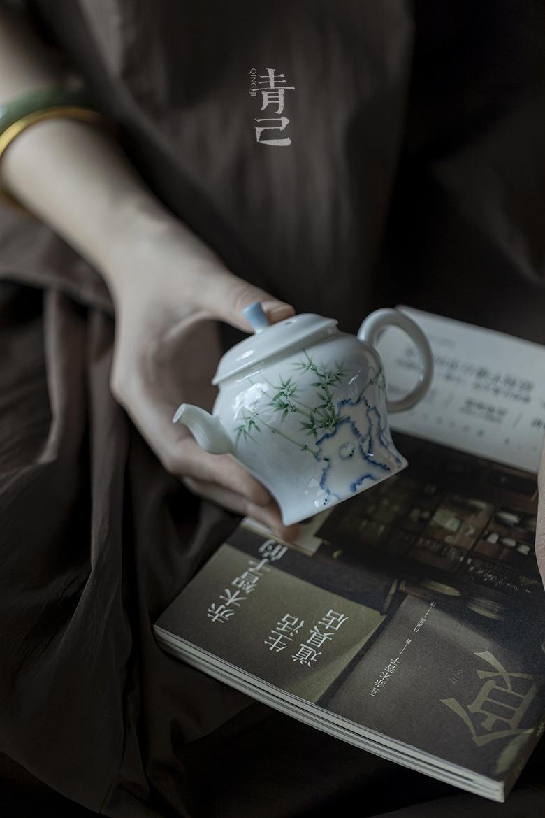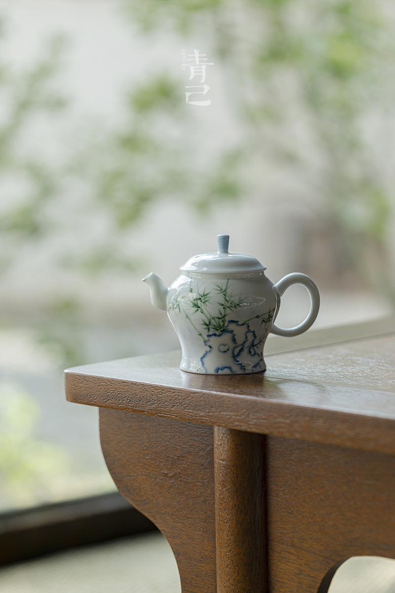 Qingji pintado à mão Taihu pedra bambu bule de chá kung fu conjunto de chá azul e branco bule de chá filtro de buraco de bola lanterna de palácio doméstico pote único