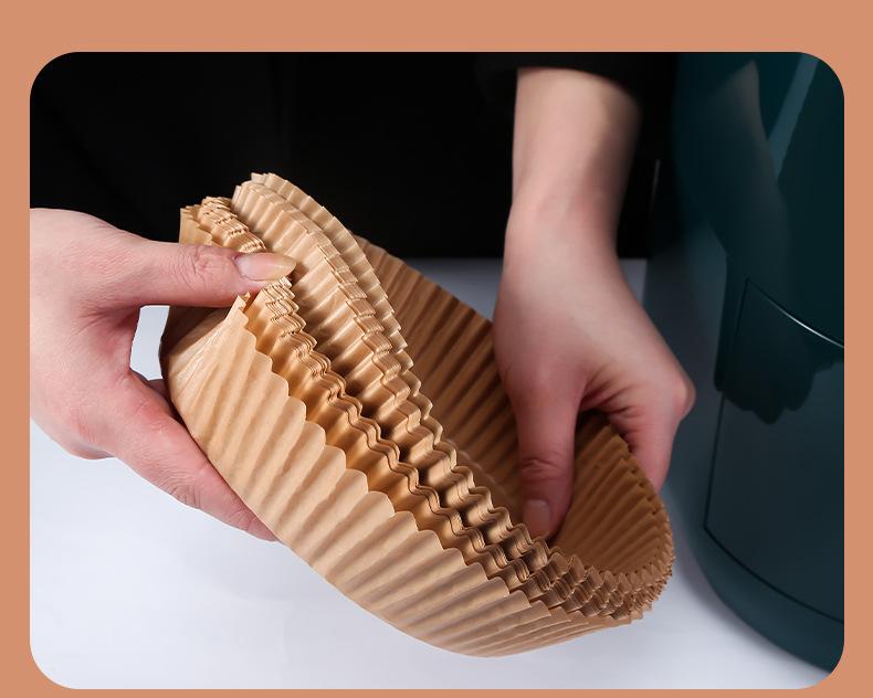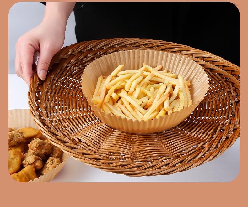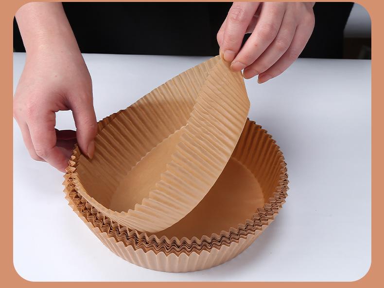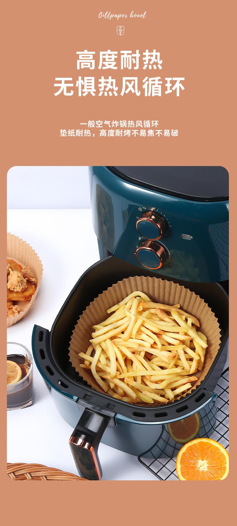 Papel para fritadeira de ar de qualidade alimentar, papel especial para fritadeira de ar, atacado, redondo, descartável, bandeja de papel de silicone para assar, óleo