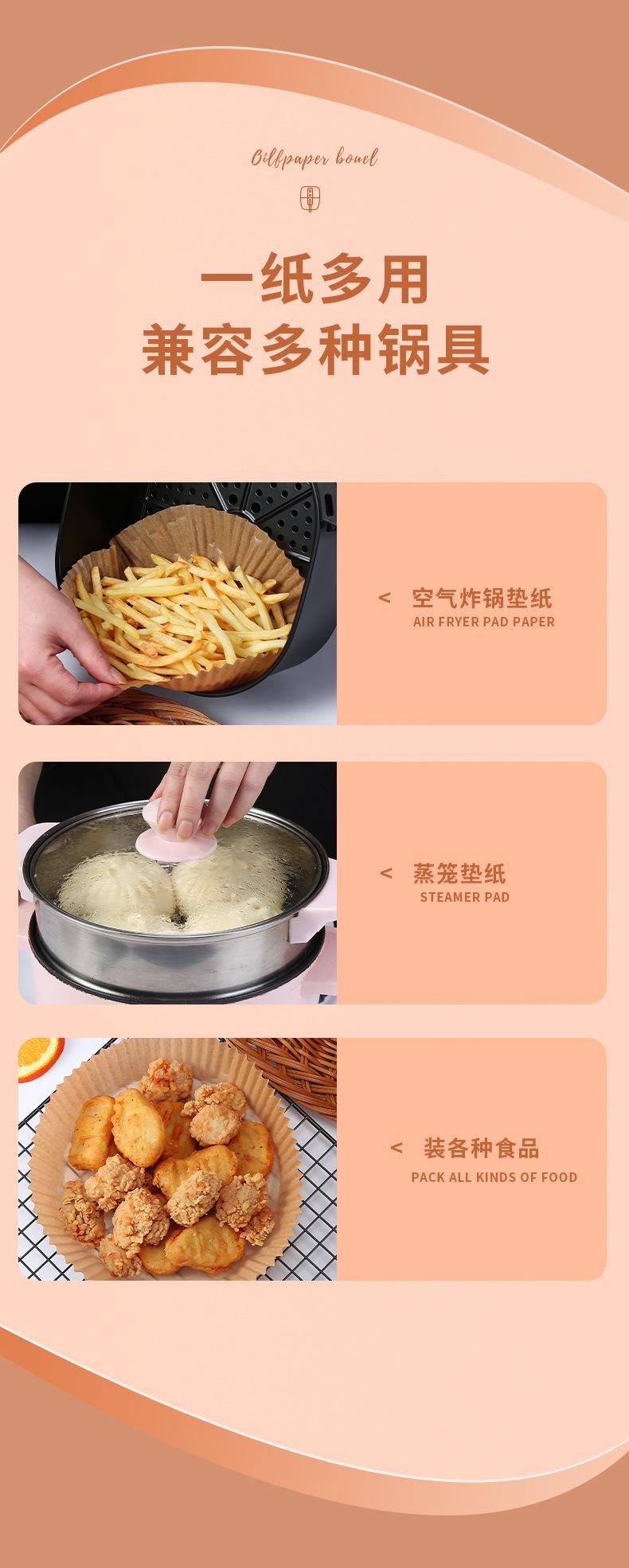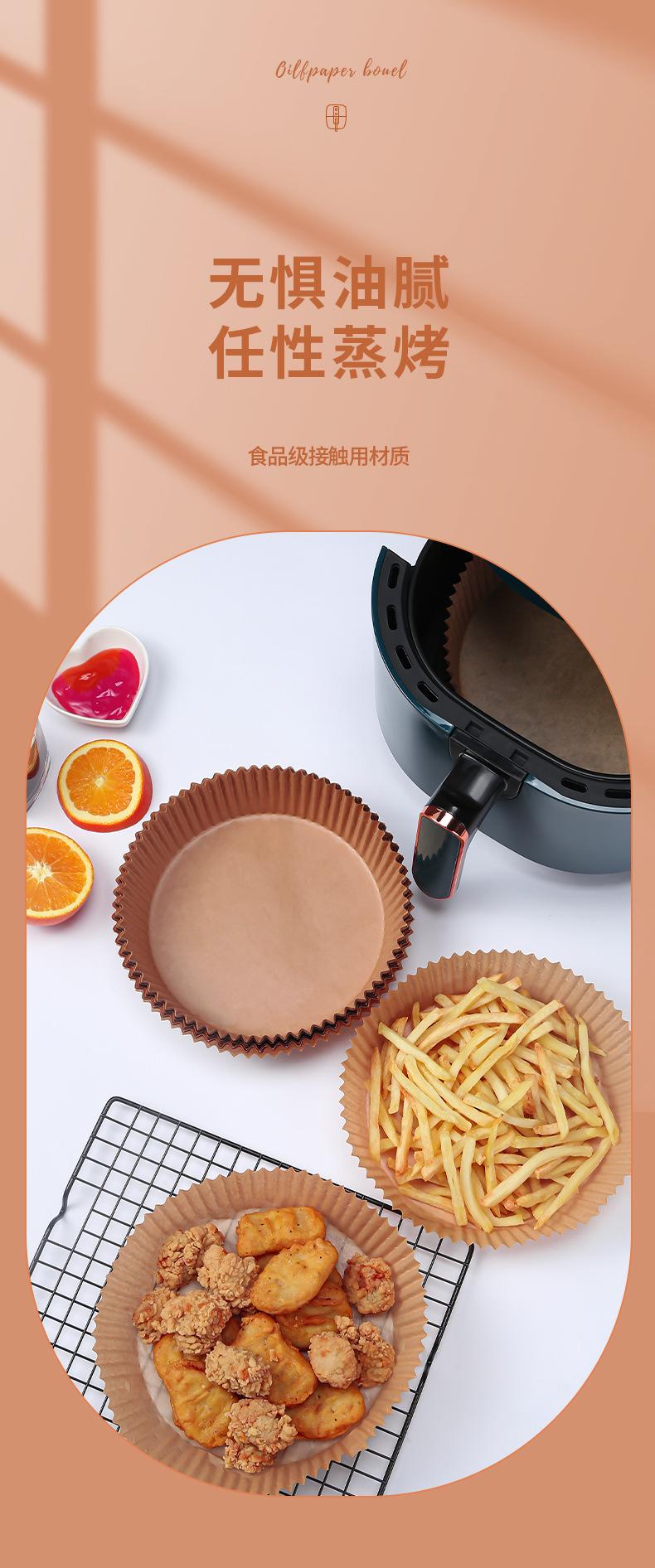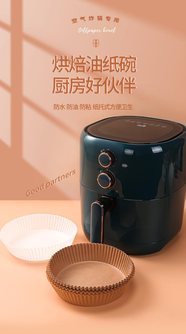 Papel para fritadeira de ar de qualidade alimentar, papel especial para fritadeira de ar, atacado, redondo, descartável, bandeja de papel de silicone para assar, óleo