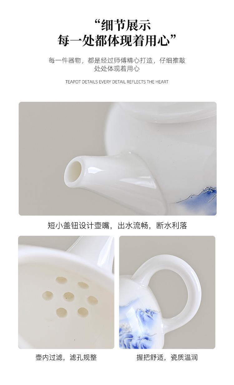Compre Conjunto de chá de jade de gordura de ovelha, conjunto doméstico de alta qualidade, porcelana branca Dehua, tampa de bule de cerâmica, tigela, xícara de chá, cerâmica, chá kung fu de alta qualidade no atacado no Joom.pro