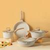 Conjunto de Utensílios de Cozinha Antiaderentes de Pedra Médica Transfronteiriço com Alto Valor Estético, Incluindo Panela de Sopa, Frigideira, Panela para Cozinhar a Vapor, Leiteira, Fogão de Indução e Panela de Fundo Plano