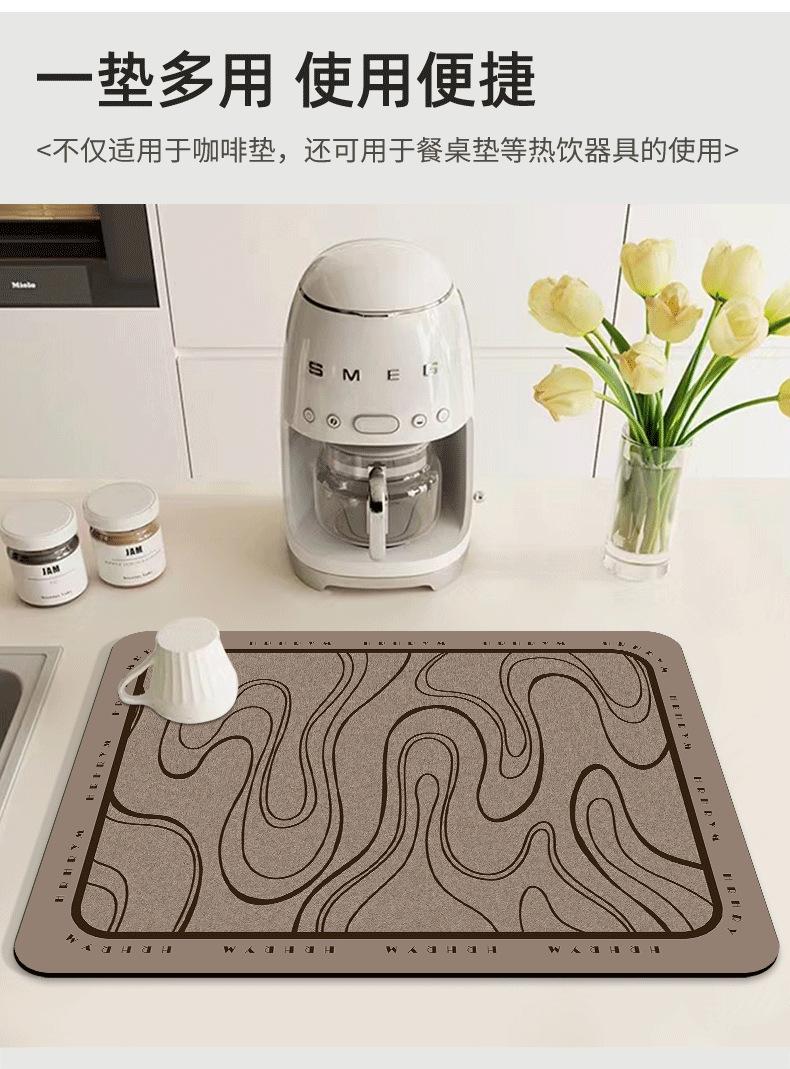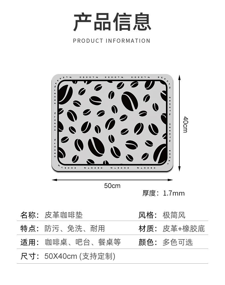 Tapete de café minimalista, simples, criativo, quadrado, antiderrapante, à prova d'água, couro, café, tapete de isolamento térmico de um lado