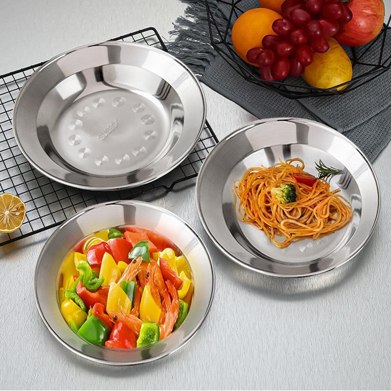 304 Disco de Aço Inoxidável Espessado Prato de Bolinho Prato Fundo Prato de Churrasco de Qualidade Alimentar Doméstica Prato de Jantar Prato de Arroz Prato