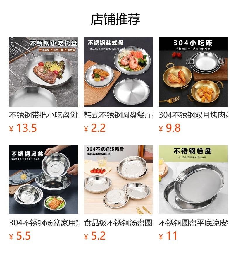 304 stainless steel dish plate 19.6*2.8cm (06007120), 304 stainless steel dish plate 21.5*3.1cm (06007122), 30...