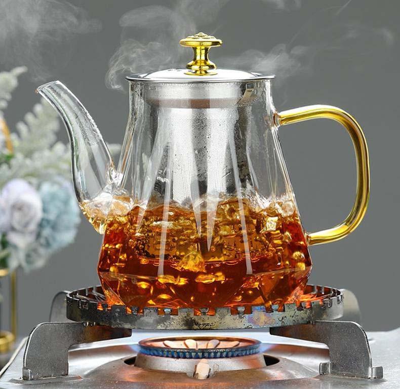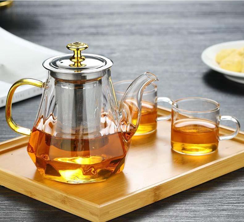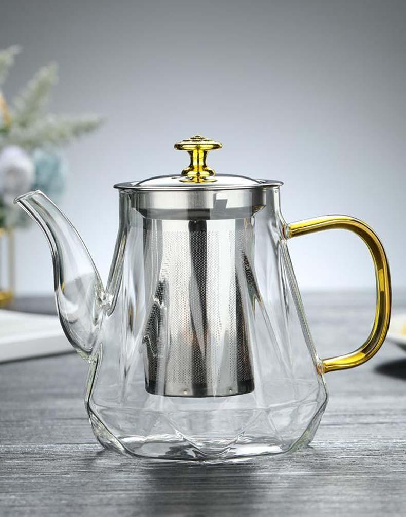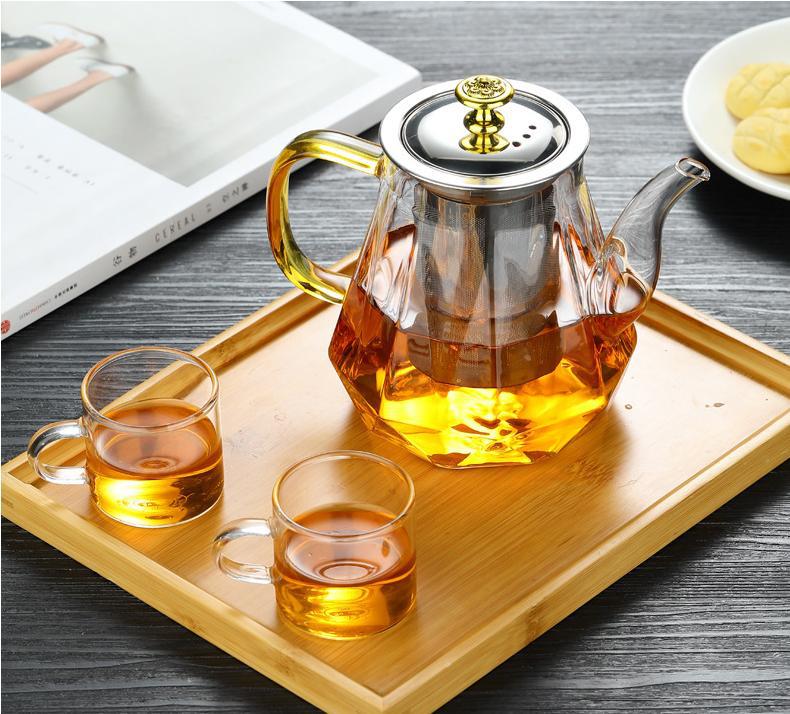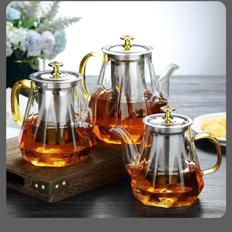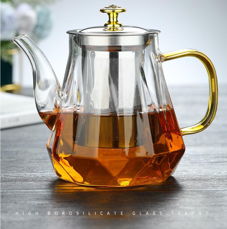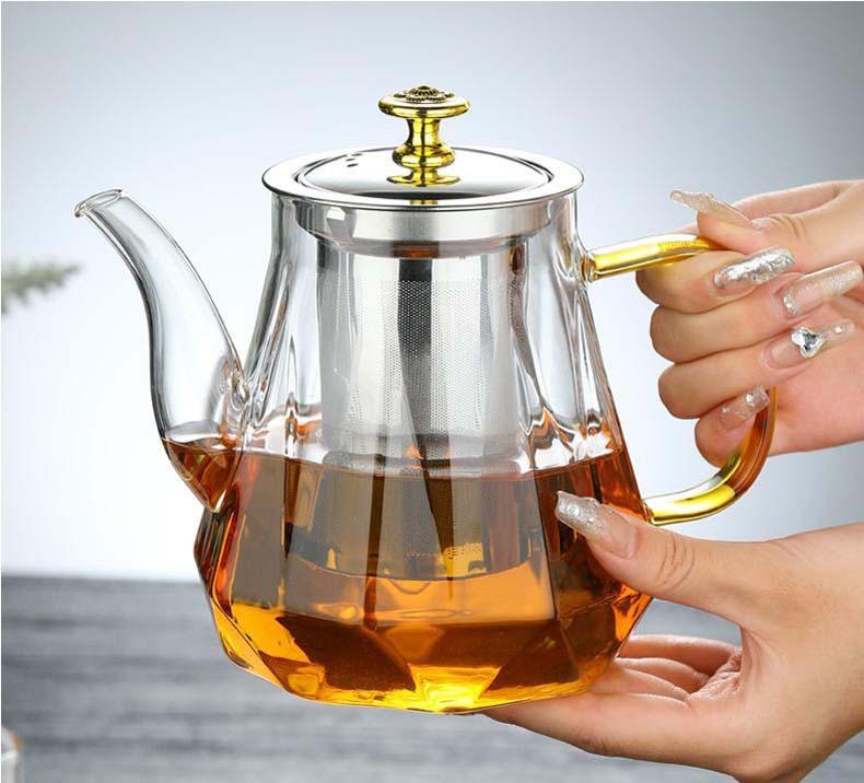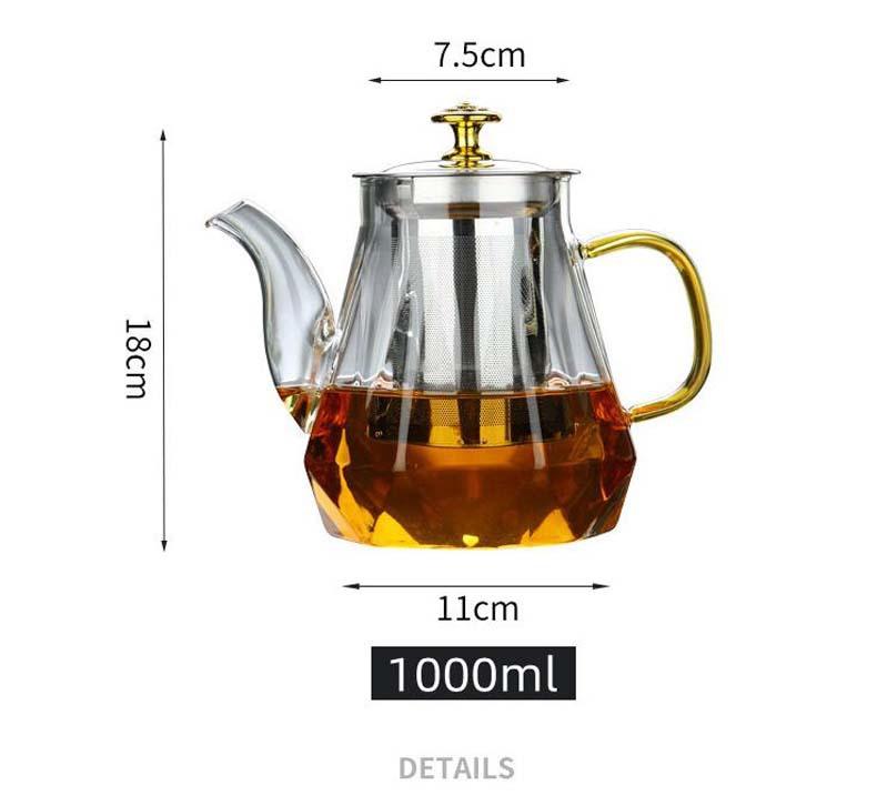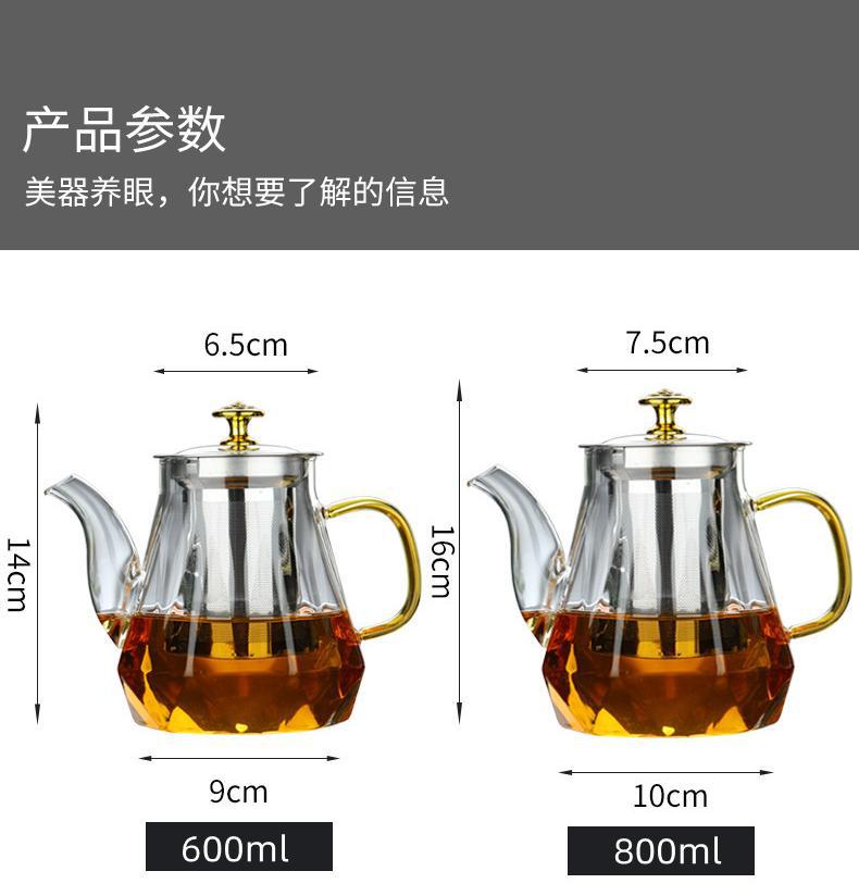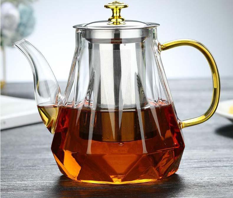 Geração transfronteiriça de bule de vidro resistente ao calor de alto teor de borosilicato, bule de filtro de aço inoxidável, bule de diamante de grande capacidade, máquina de chá