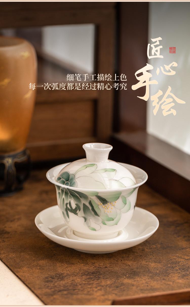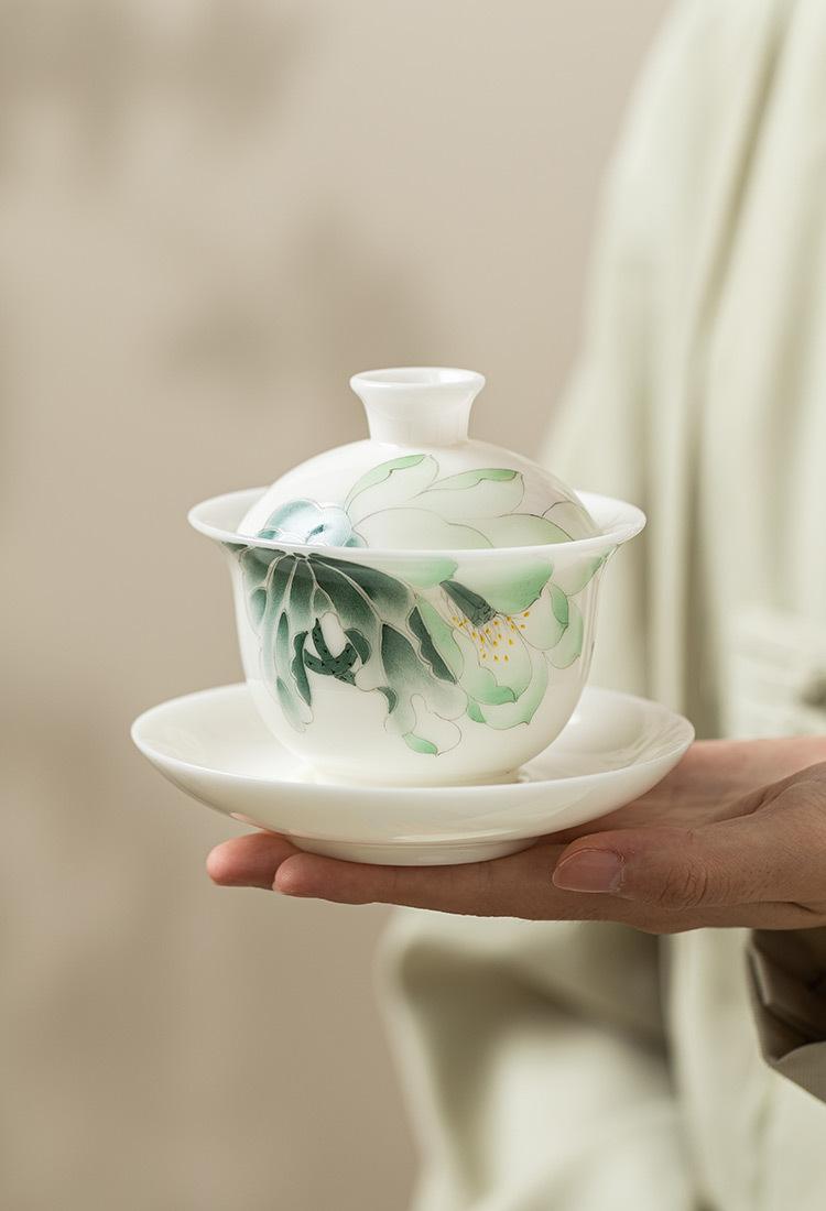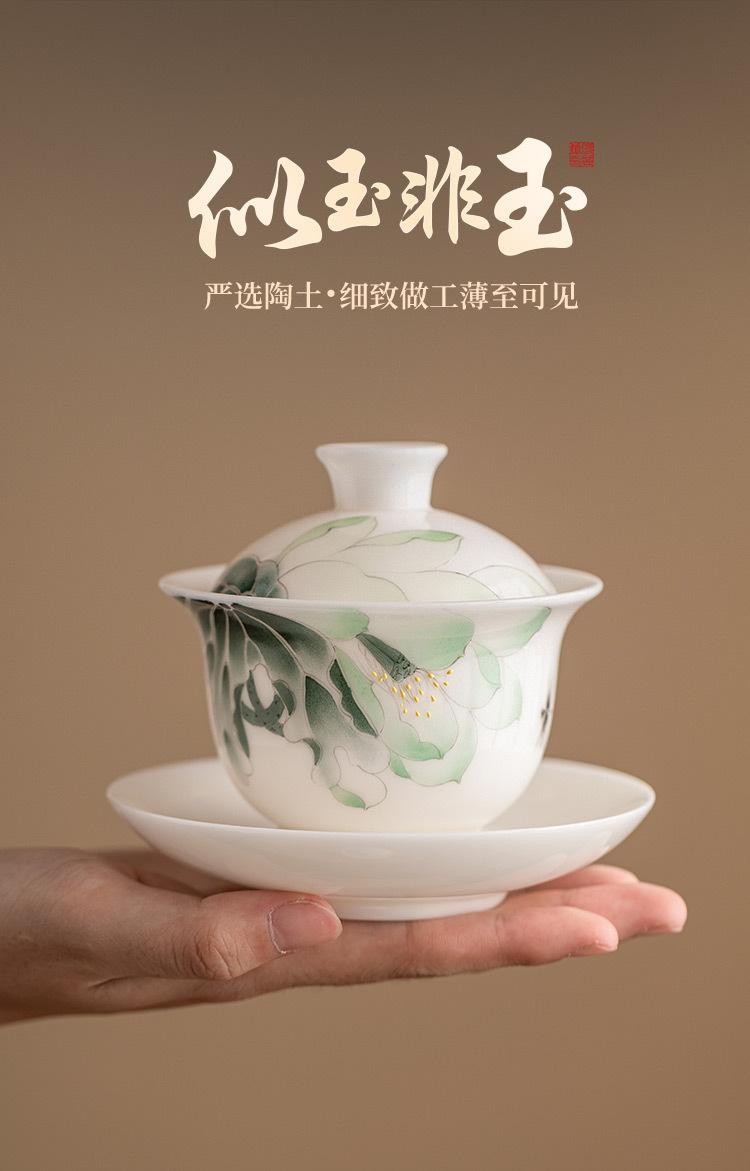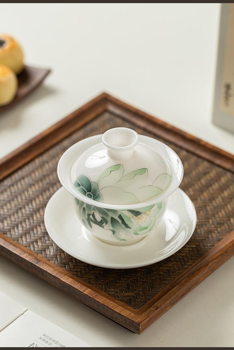 Compre Mestre Zhang Lijiao Ice-semente Mat Fat Jade Tea Set Três-talento Tampa Tigela Não Quente Único Alta Qualidade Kung Fu Tea Bowl Caixa de Presente no atacado no Joom.pro