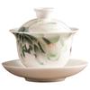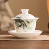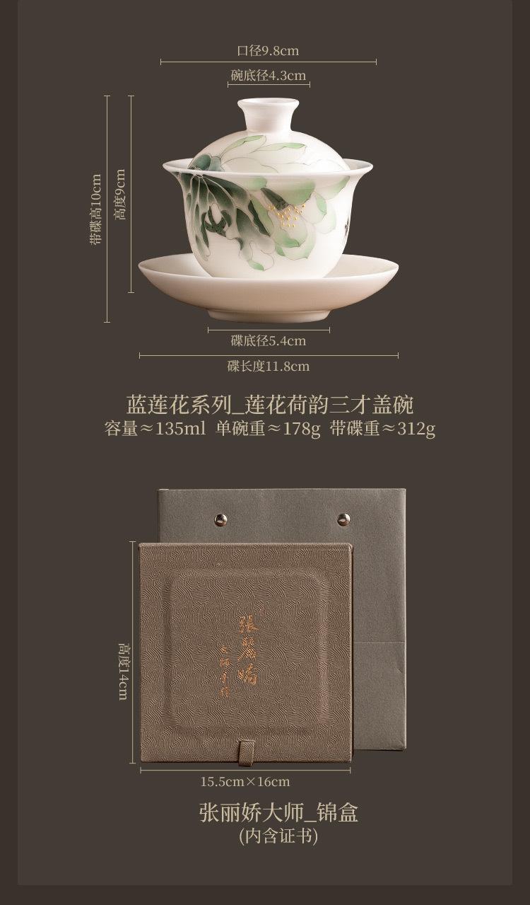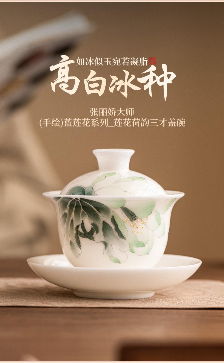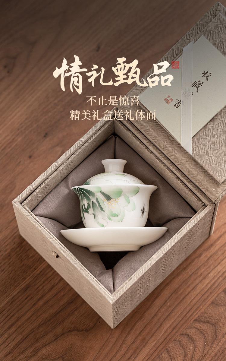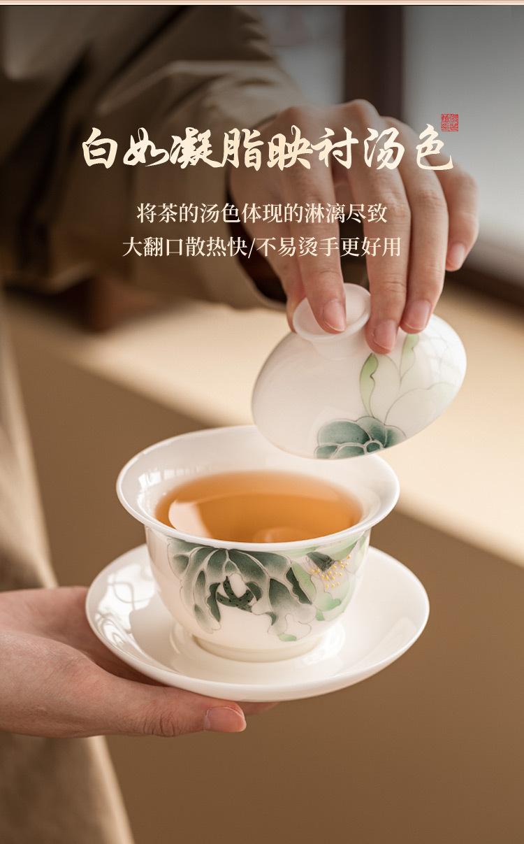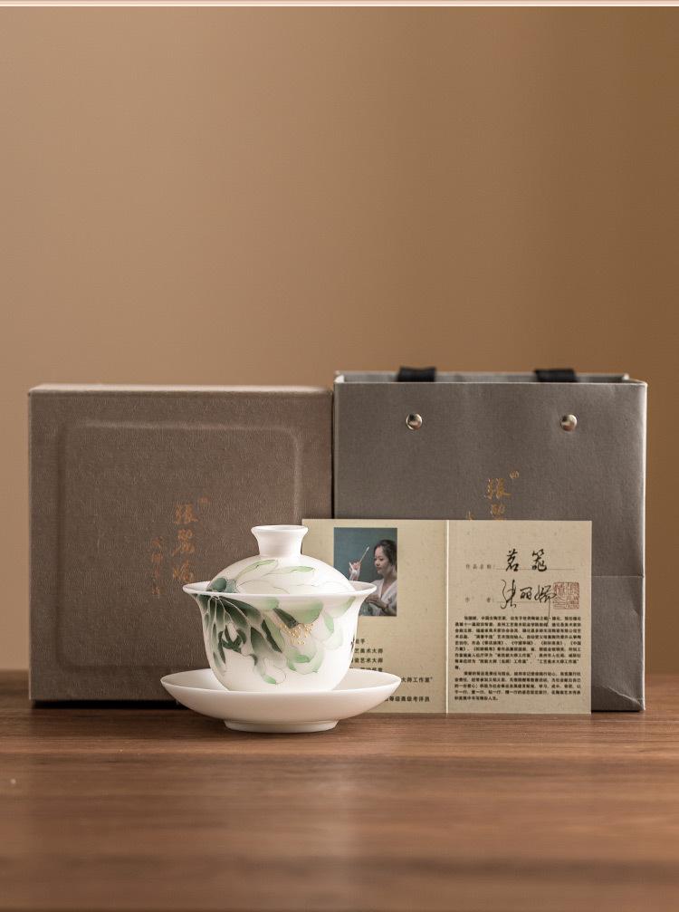 Mestre Zhang Lijiao Ice-semente Mat Fat Jade Tea Set Três-talento Tampa Tigela Não Quente Único Alta Qualidade Kung Fu Tea Bowl Caixa de Presente