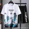 Shorts esportivos de secagem rápida para jovens, camiseta de manga curta da moda de três peças, terno fino casual masculino para estudantes de verão