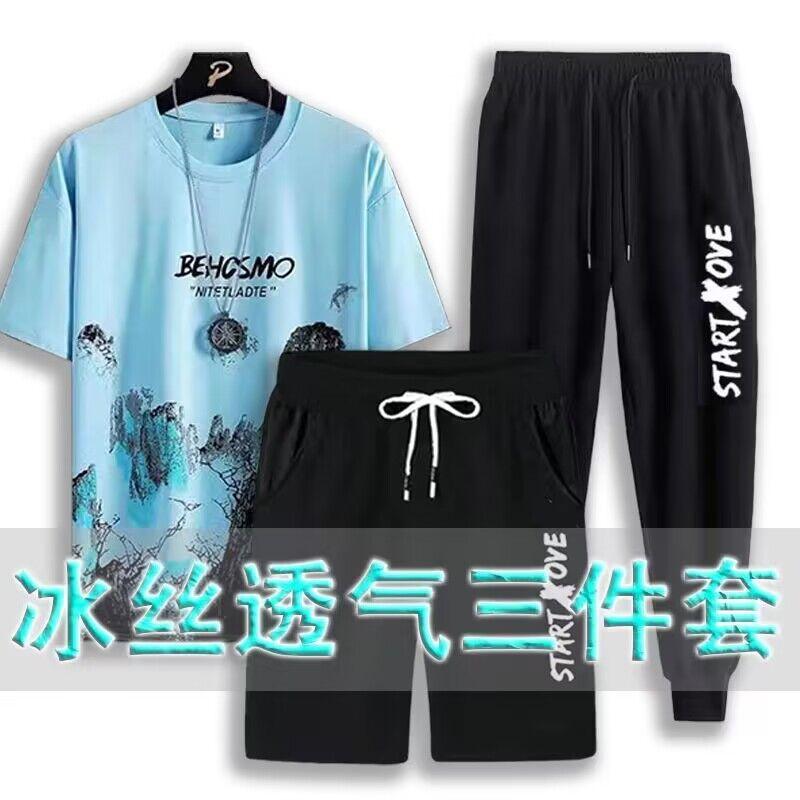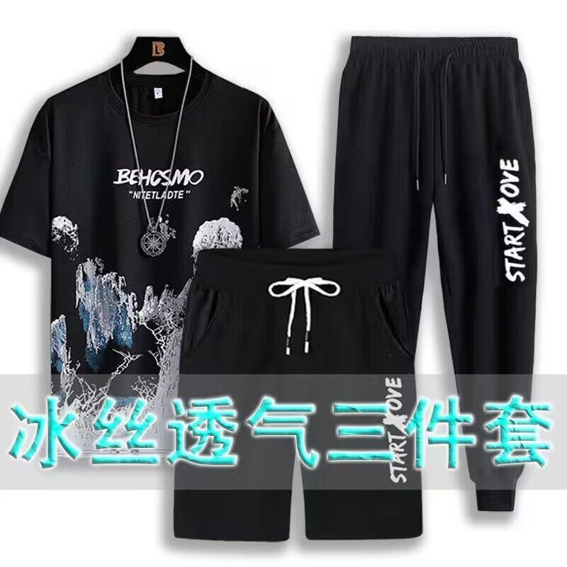Compre Shorts esportivos de secagem rápida para jovens, camiseta de manga curta da moda de três peças, terno fino casual masculino para estudantes de verão no atacado no Joom.pro