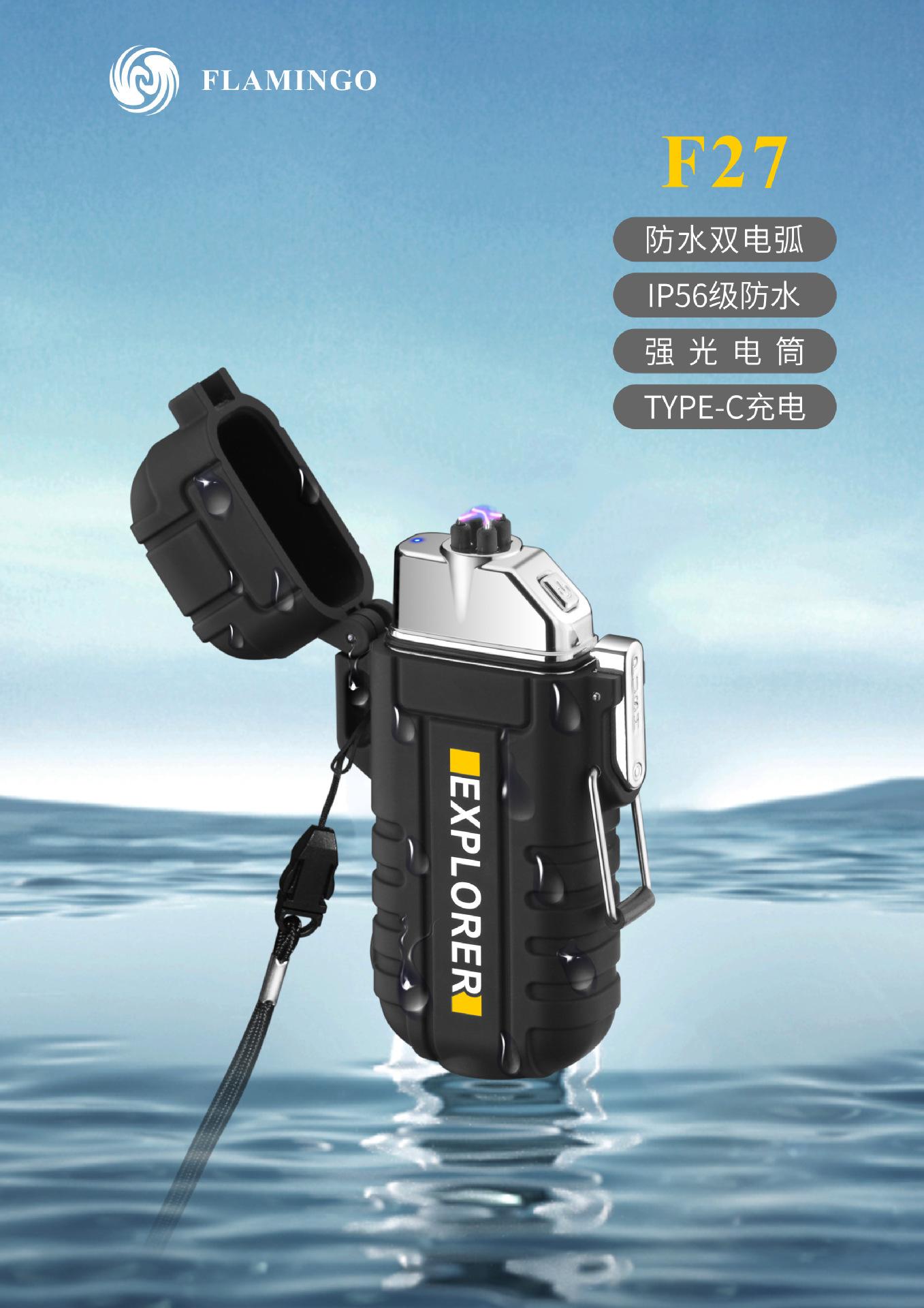 Lanterna multifuncional arco à prova d'água isqueiro F27 ao ar livre portátil à prova de vento isqueiro abastecimento transfronteiriço atacado