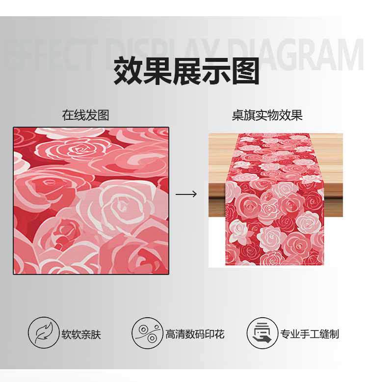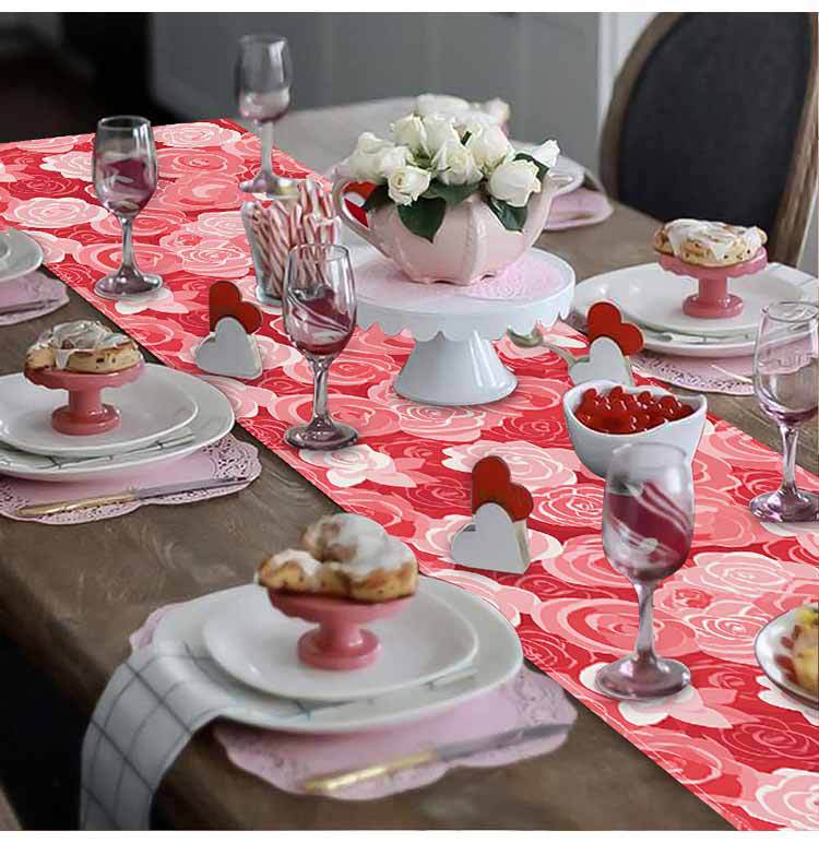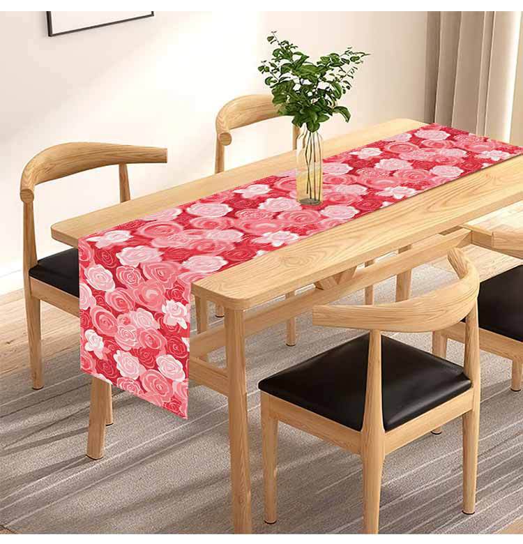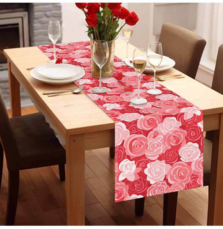 Compre Nova bandeira de mesa de flor rosa Dia dos Namorados Toalha de mesa estampada em linho Toalha de mesa decorativa para sala de estar de feriados transfronteiriços Tapete Bandeira de chá no atacado no Joom.pro