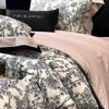 Conjunto de quatro peças de lençol de algodão de fibra longa estilo luxo 100s com 4 luzes, capa de edredom de algodão com impressão digital de flores americanas, roupa de cama