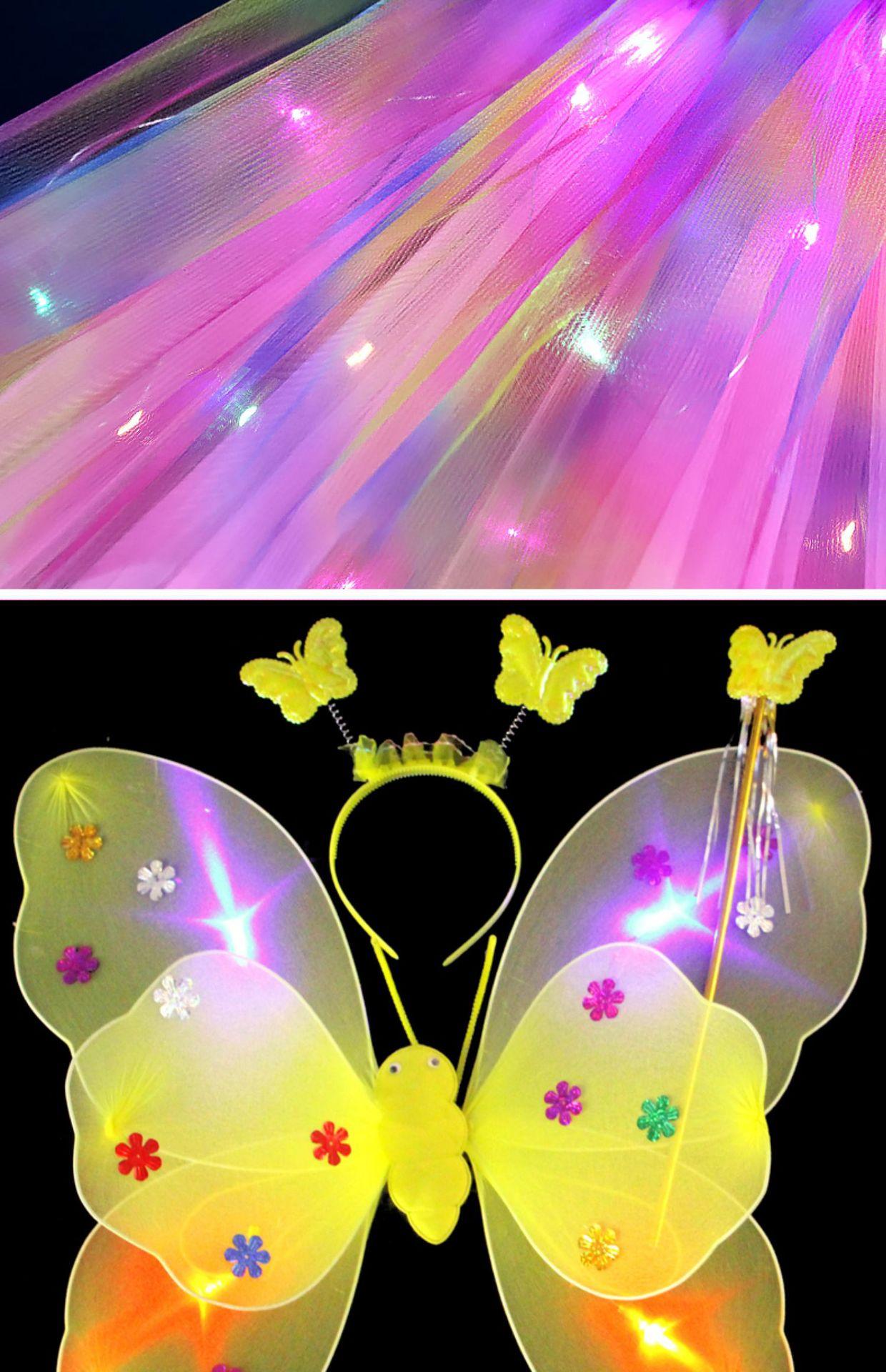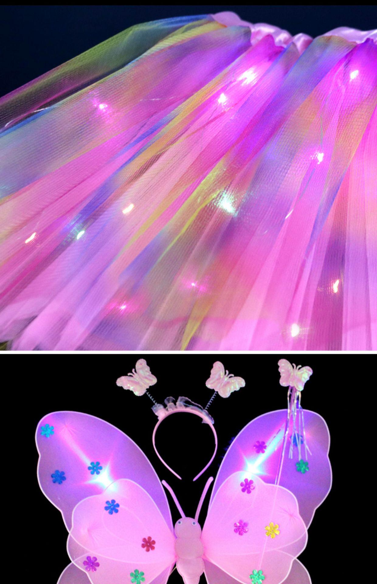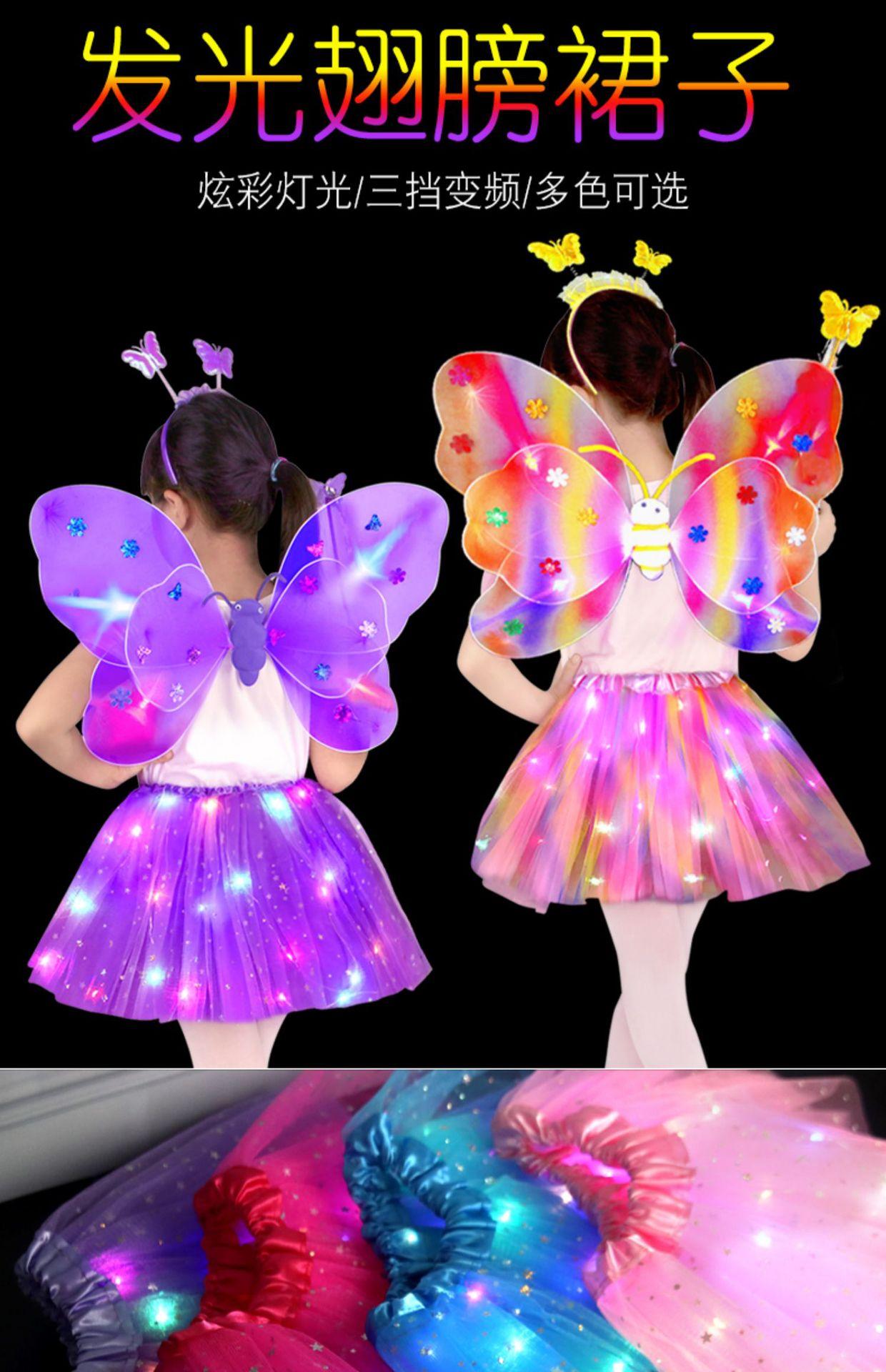 Powder-glowing wings headband magic wand, Powder-glowing wings headband magic wand star skirt, Powder-glowing ...