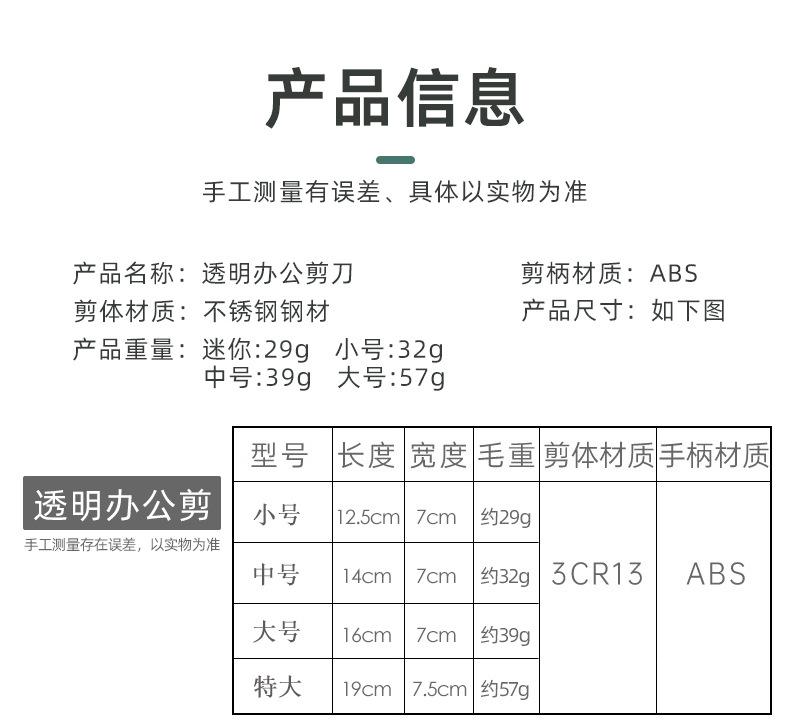 small size transparent office scissors-PP bag, Medium transparent office scissors-PP bag, Large transparent of...