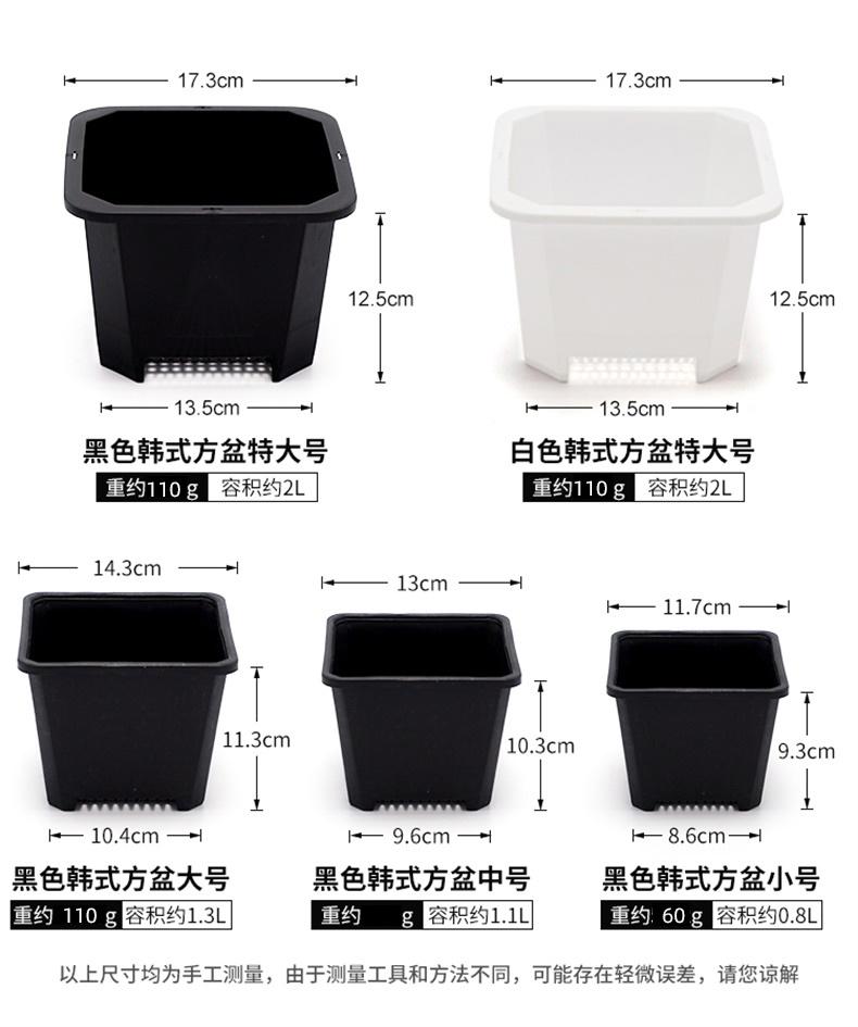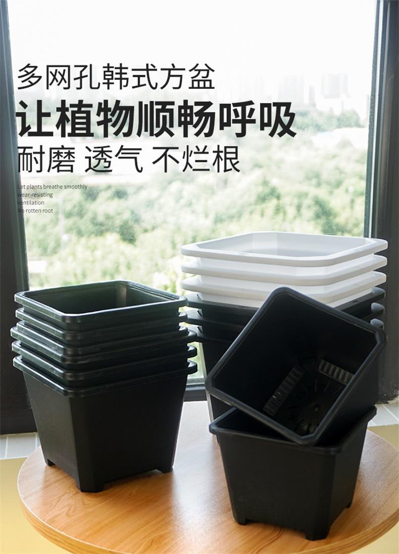 Corte de mudas suculentas domésticas, pequeno vaso quadrado preto, vaso quadrado coreano, grande vaso de flores Jingtian de plástico quadrado branco, vaso de plantio
