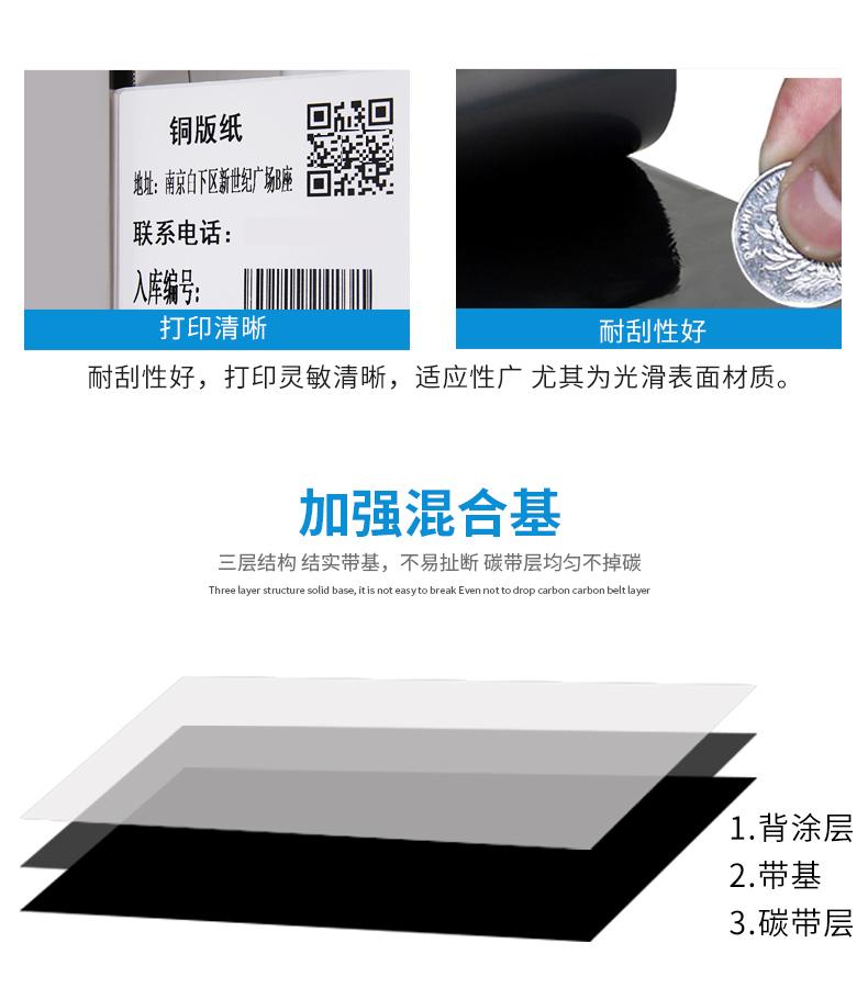 Base híbrida reforçada 50 60 70 80 90 100 110 mm300m fita de impressão de etiquetas de código de barras 40