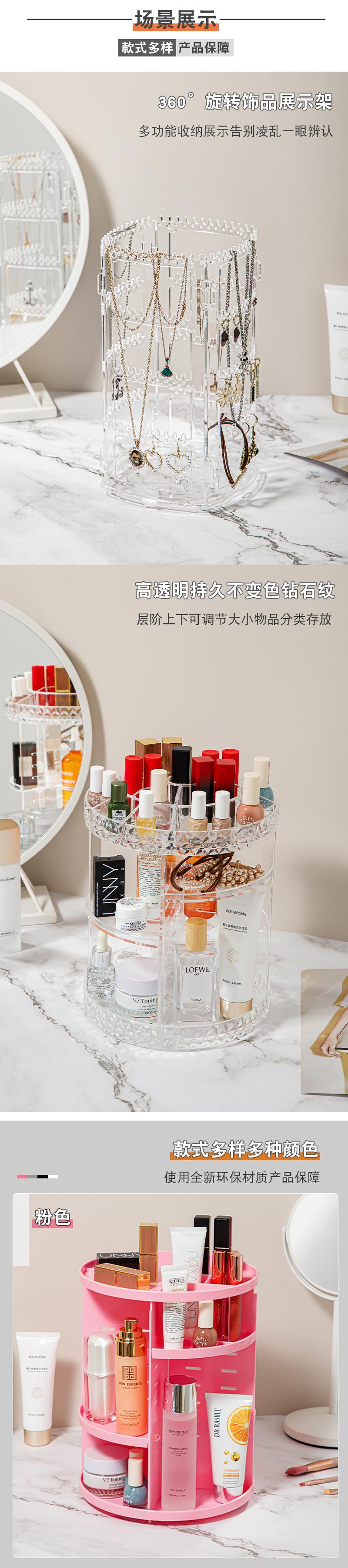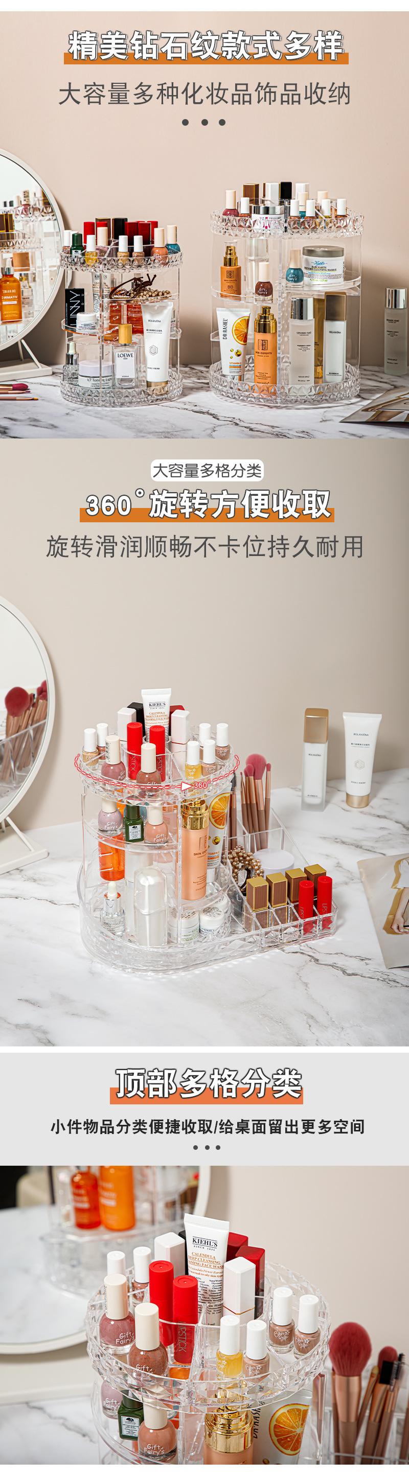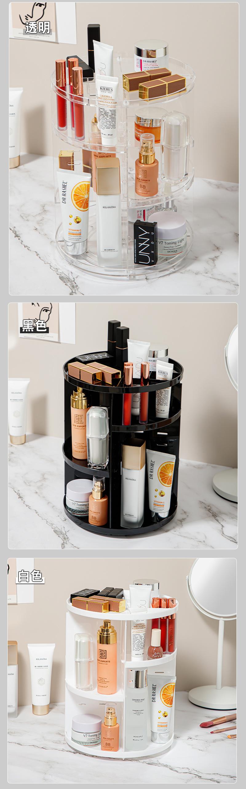 Caixa de armazenamento de cosméticos de plástico rotativa para quarto, transparente, mesa de trabalho, multicamadas, cuidados com a pele, batom, prateleira de armazenamento