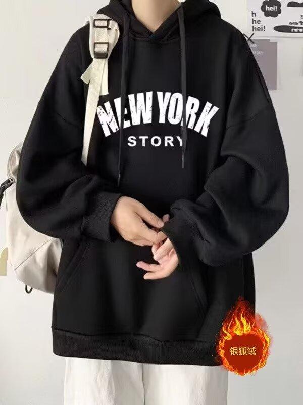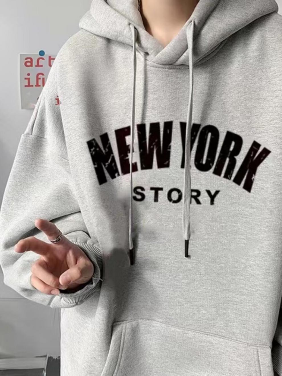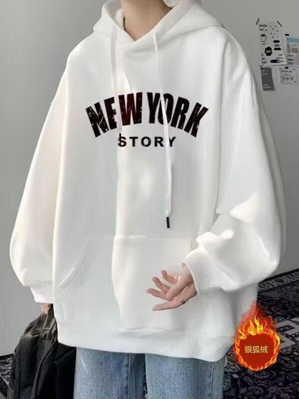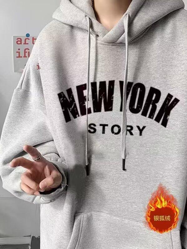 Moda Carta Com Capuz Forro de lã Engrossado Marca da moda Moletom americano Masculino Outono e Inverno 2024 Nova Jaqueta Pesada Solta