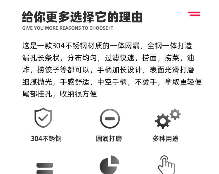 Escorredor de Peça Única Aço Inoxidável 304 Colher Escorredora para Bolinho Macarrão Filtro Escorredor para Hot Pot Frito Cozinha Novo Produto