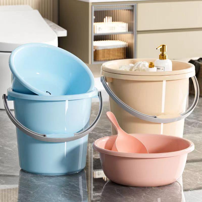Balde de plástico extra grande e espesso, balde com alça para dormitório estudantil, balde para lavatório, balde para lavar os pés, balde para banho