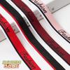 Fita de Poliéster de 25mm de Puxada Horizontal Tricotada Simples Face com Letras Pretas Estampadas Listras Tricolores Acessórios de Vestuário Fábrica