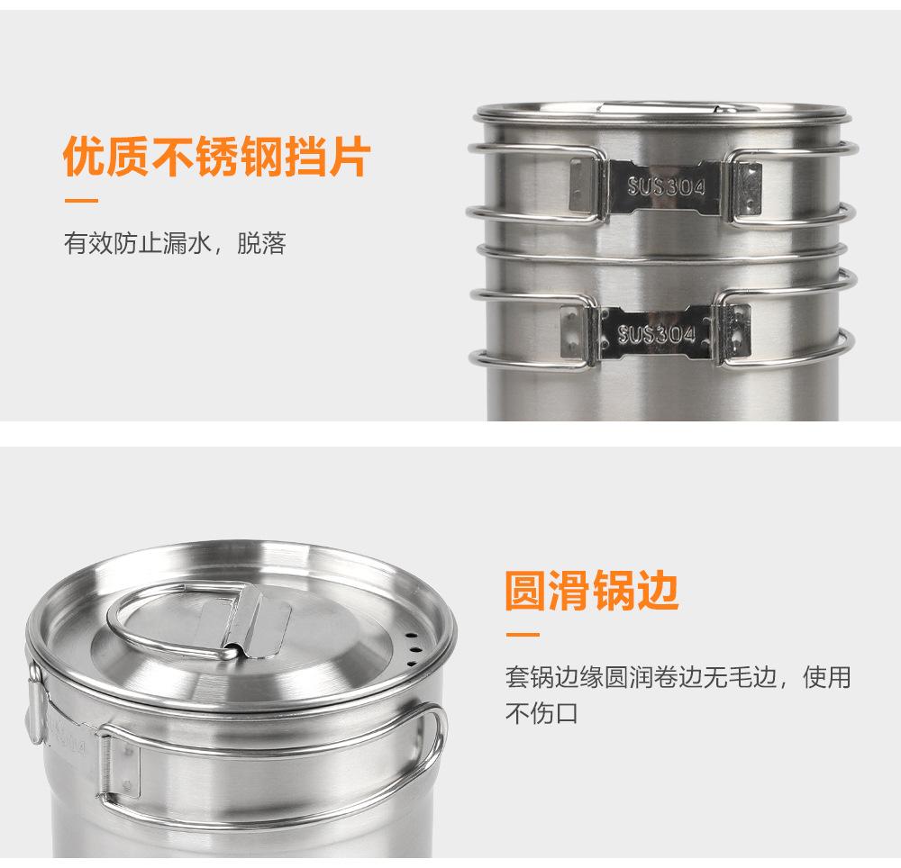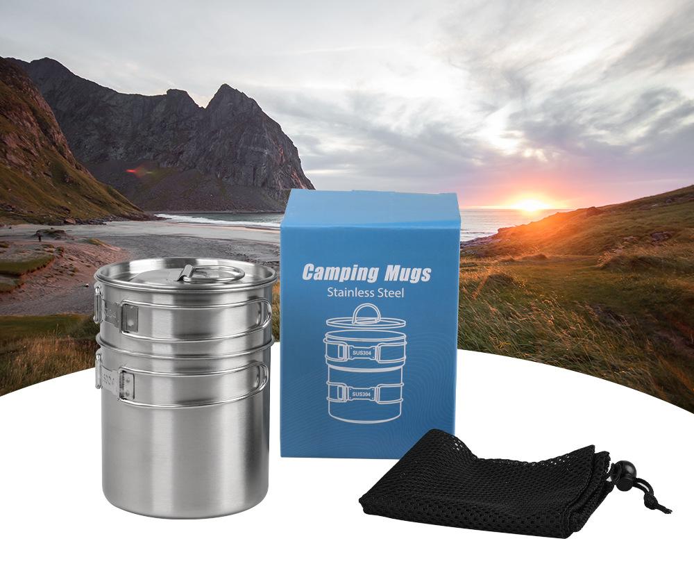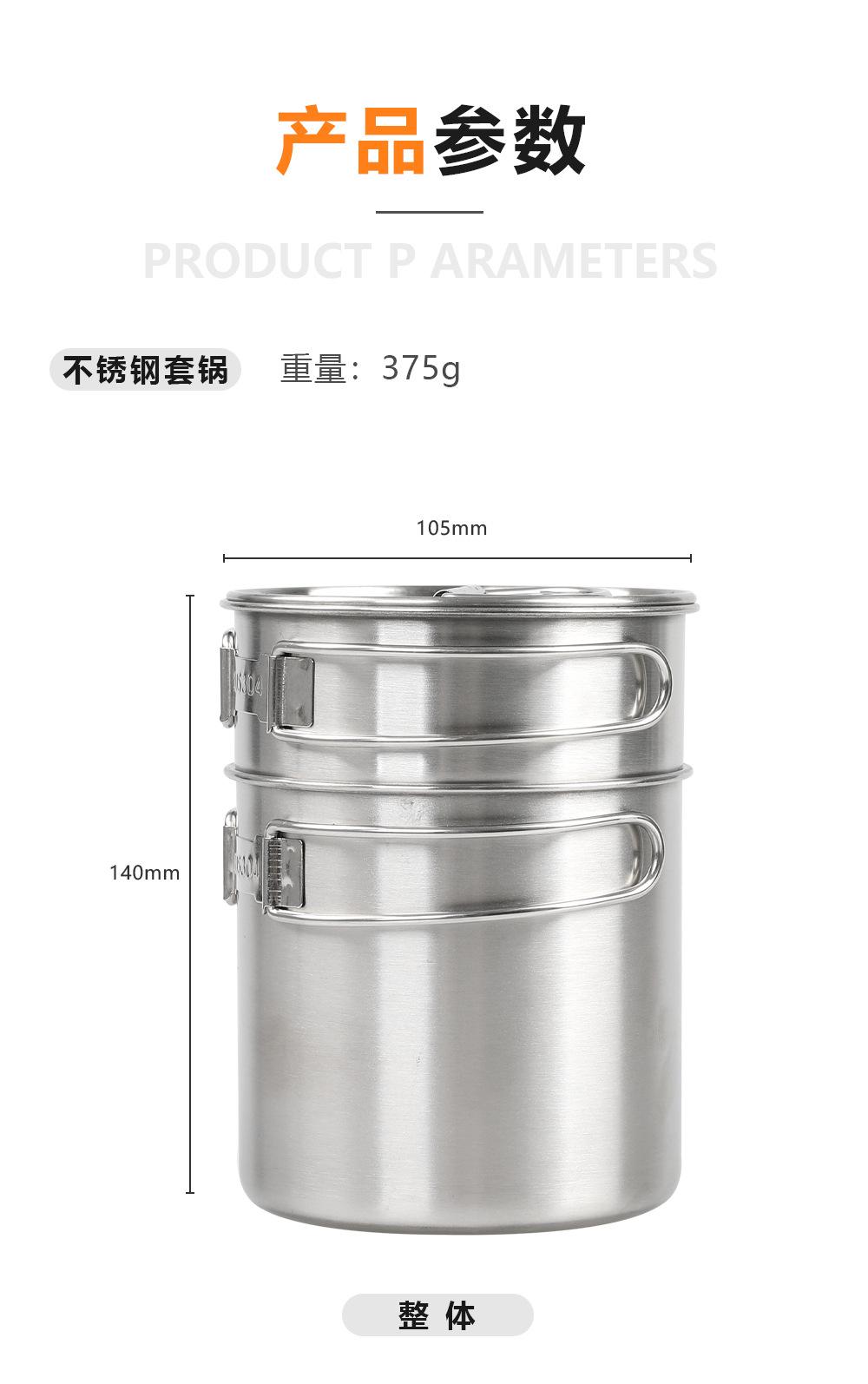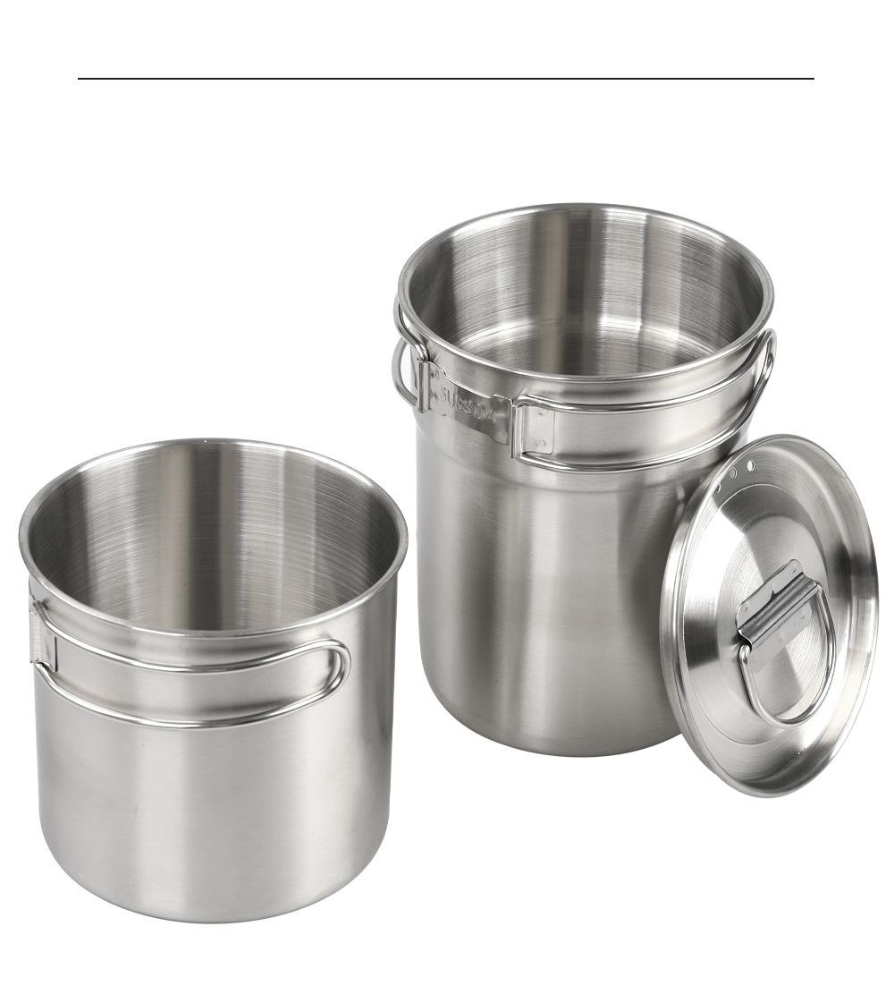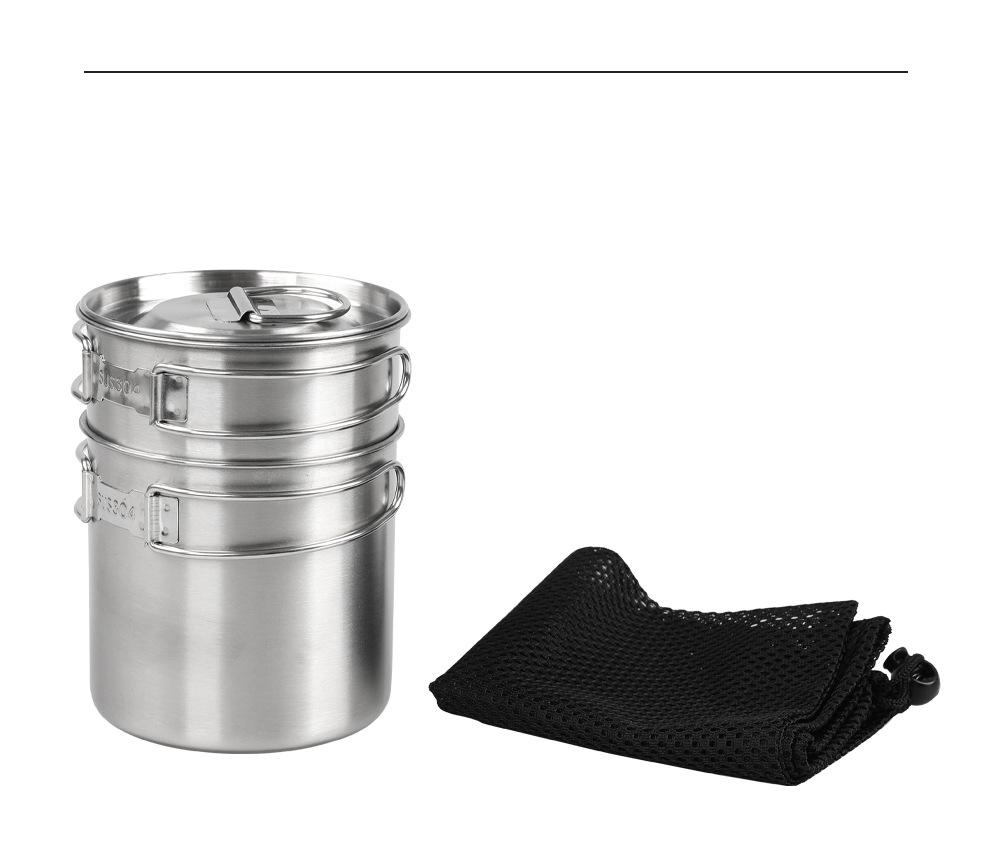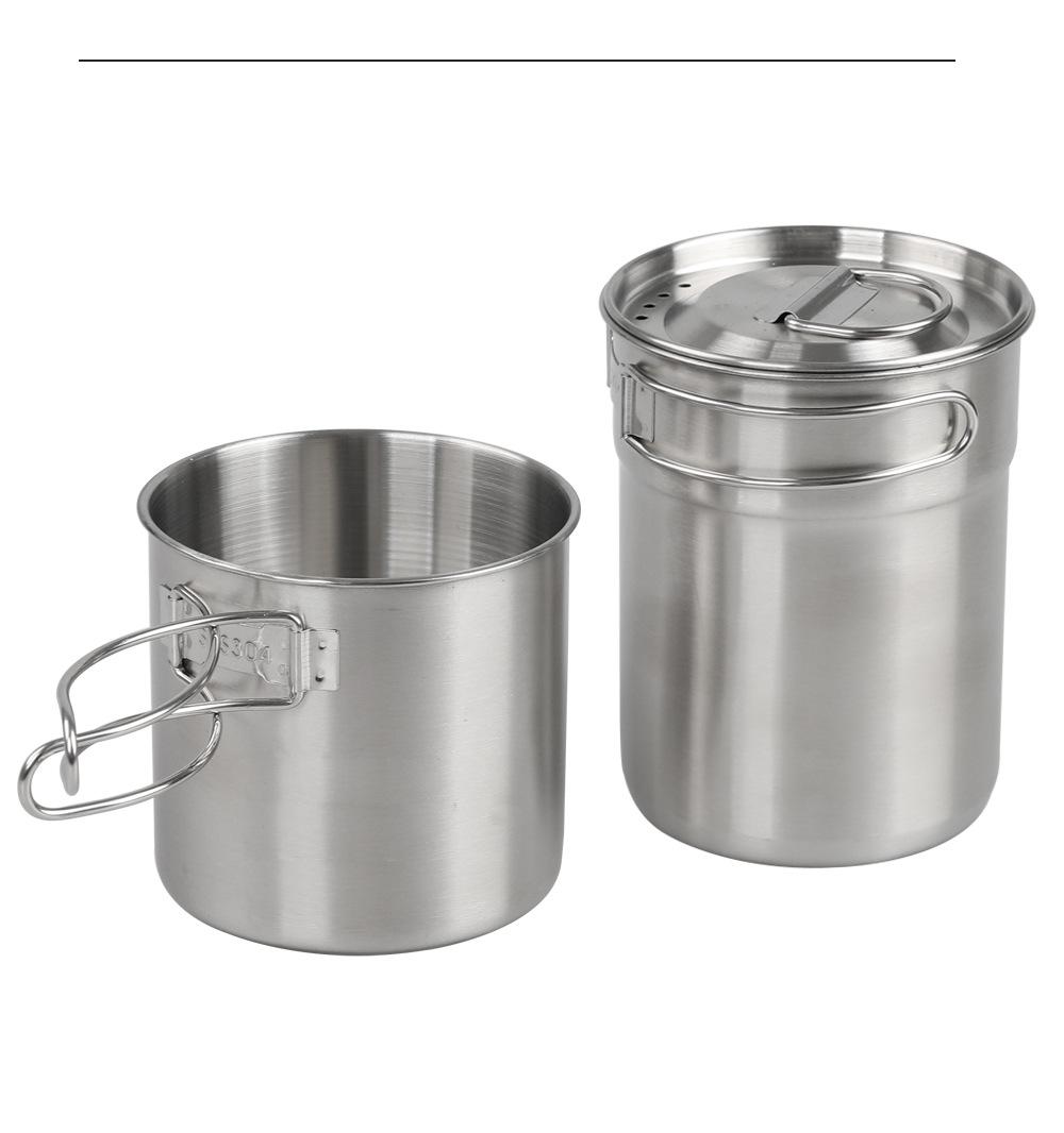 Conjunto de panelas de aço inoxidável 304 de qualidade alimentar para acampamento ao ar livre, 2 a 3 pessoas, utensílios de cozinha para acampamento, panela de churrasco portátil