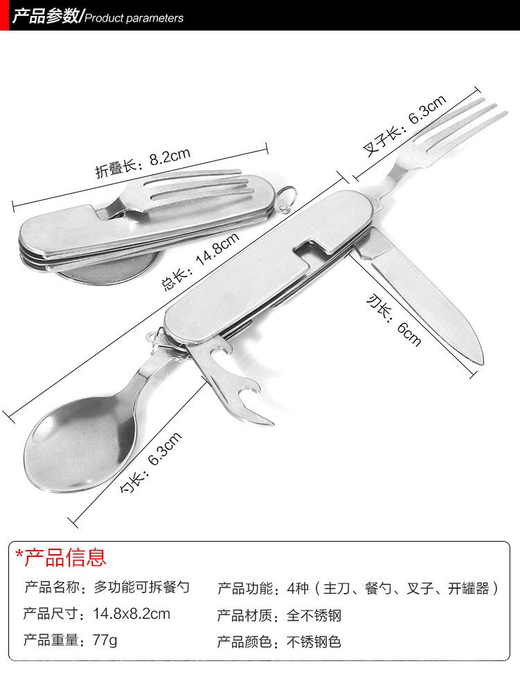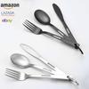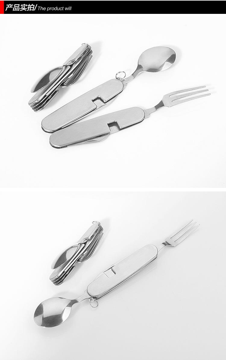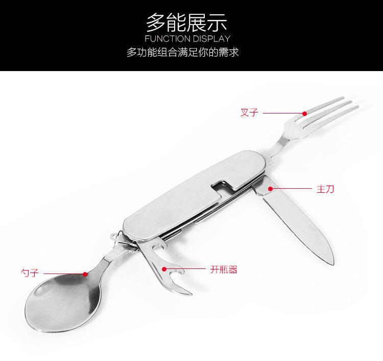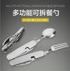 Talheres de mesa ao ar livre, combinação destacável, faca dobrável, garfo, colher, ferramentas de campo, equipamento de viagem portátil multifuncional