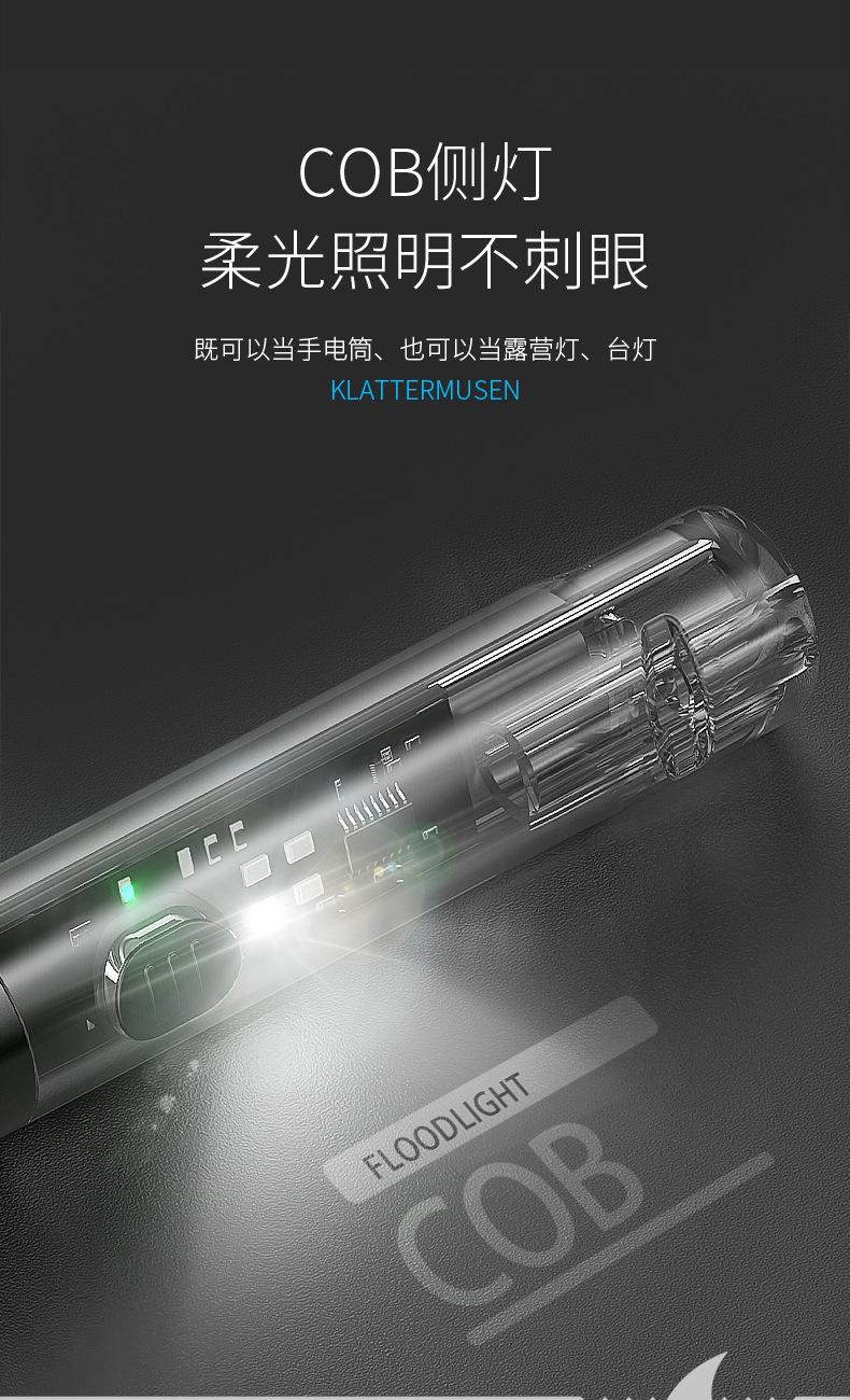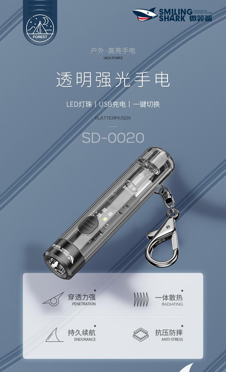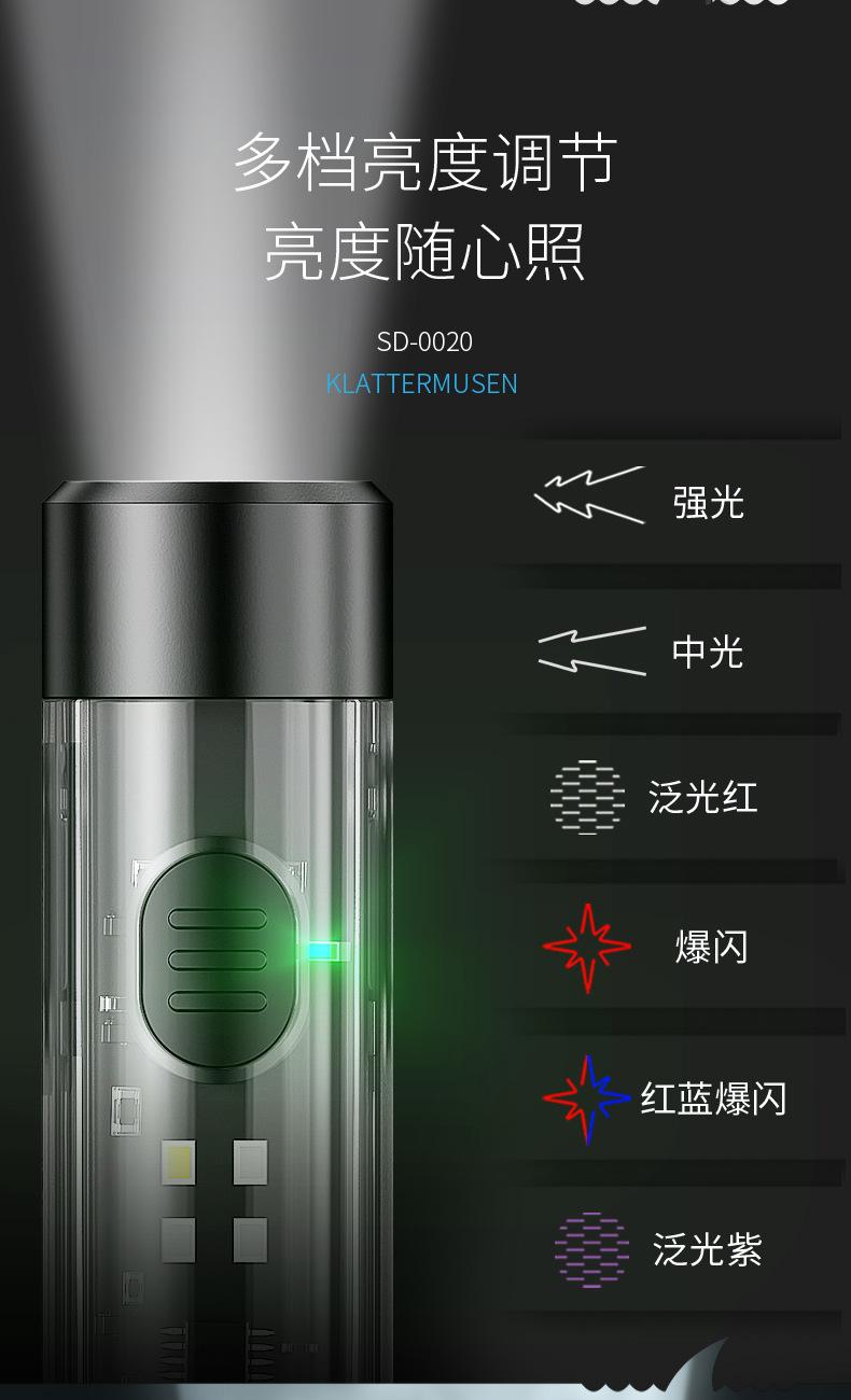 Mini chaveiro transparente forte luz lanterna holofote remoto multi-engrenagem ajustável luz lateral luz suave iluminação carregamento USB