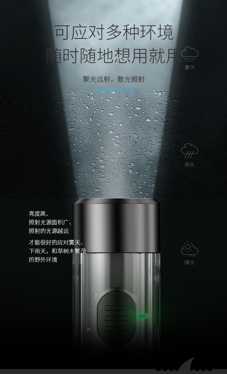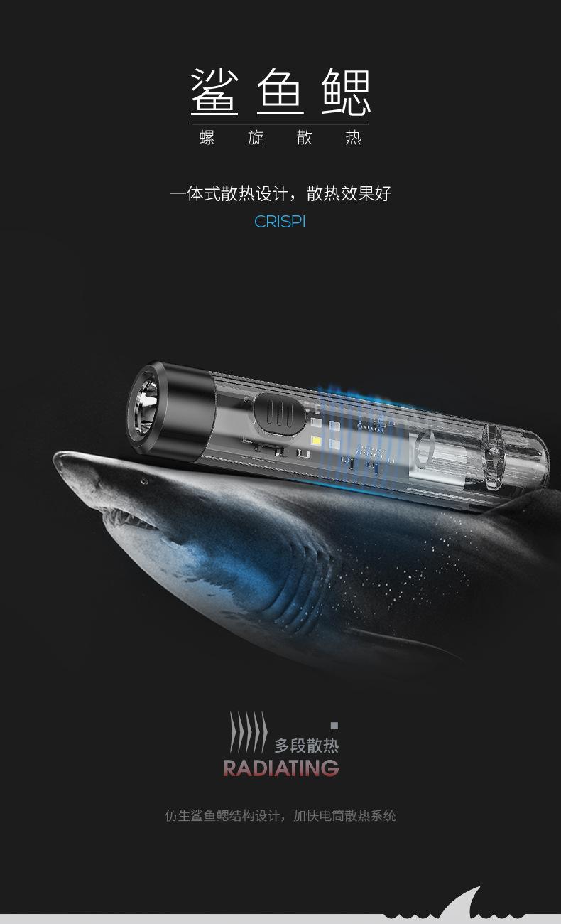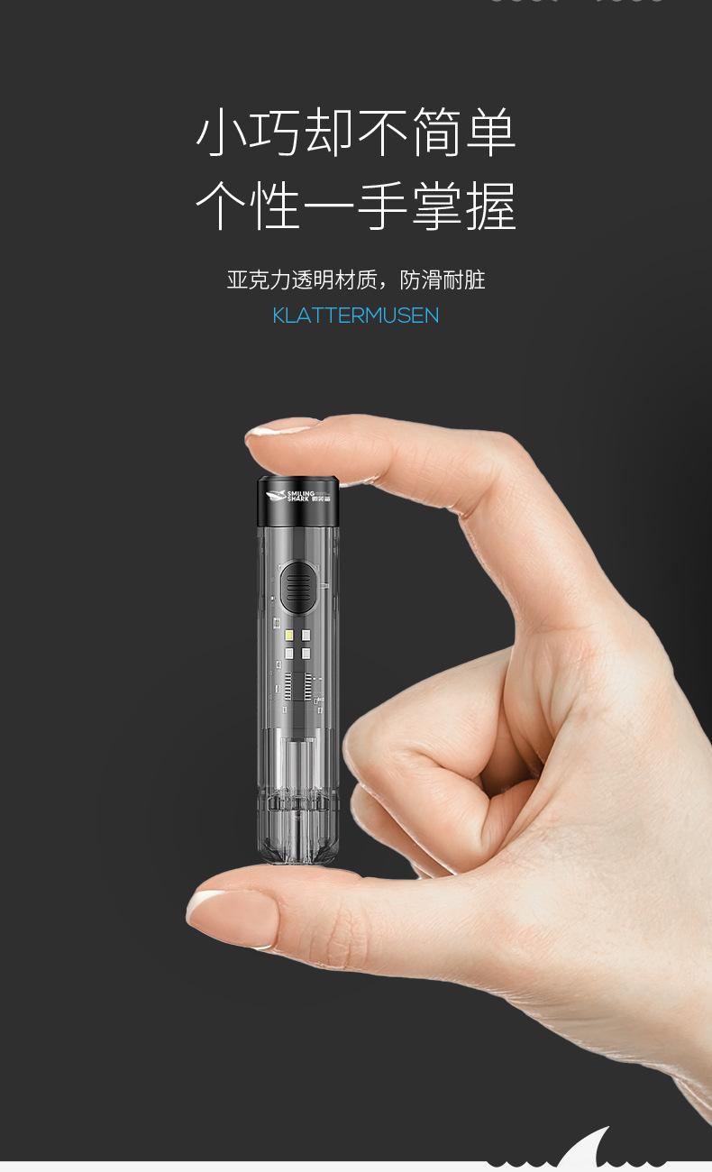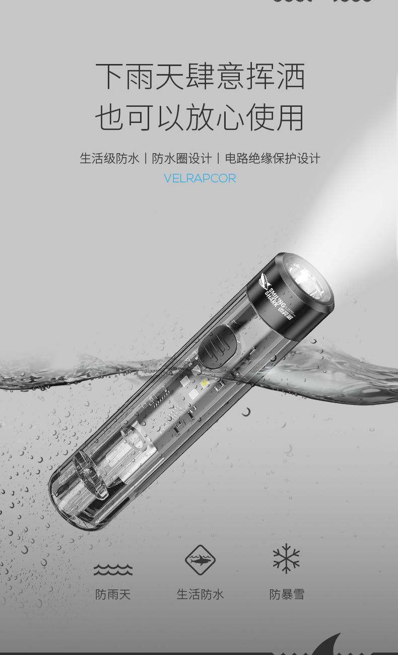 Mini chaveiro transparente forte luz lanterna holofote remoto multi-engrenagem ajustável luz lateral luz suave iluminação carregamento USB
