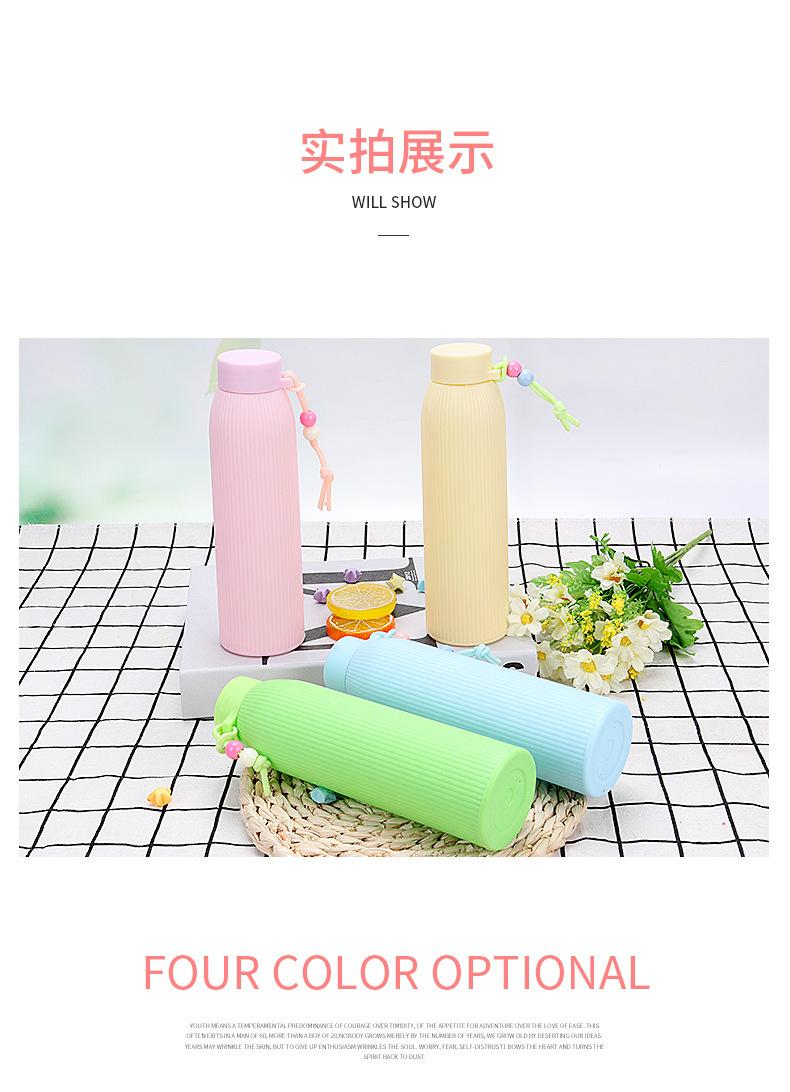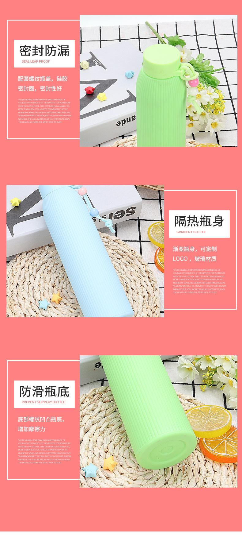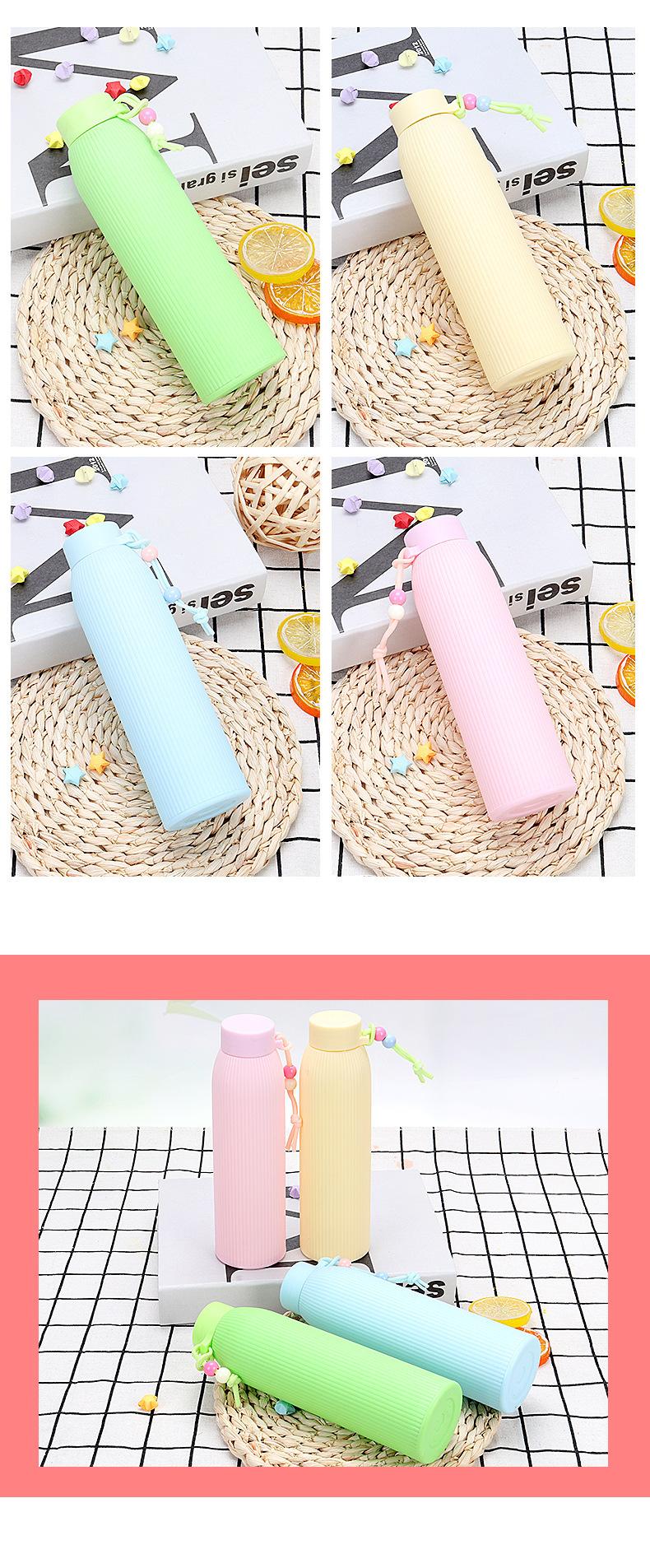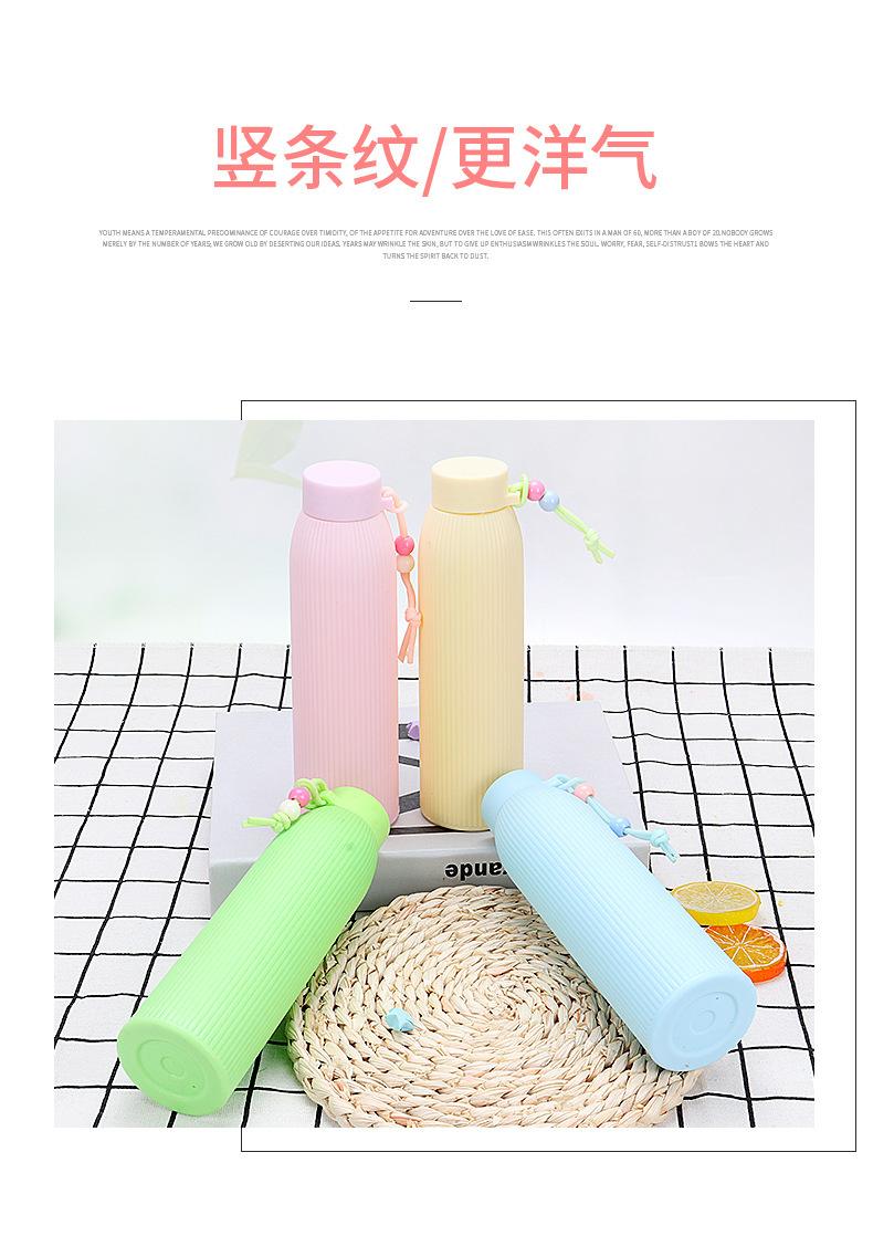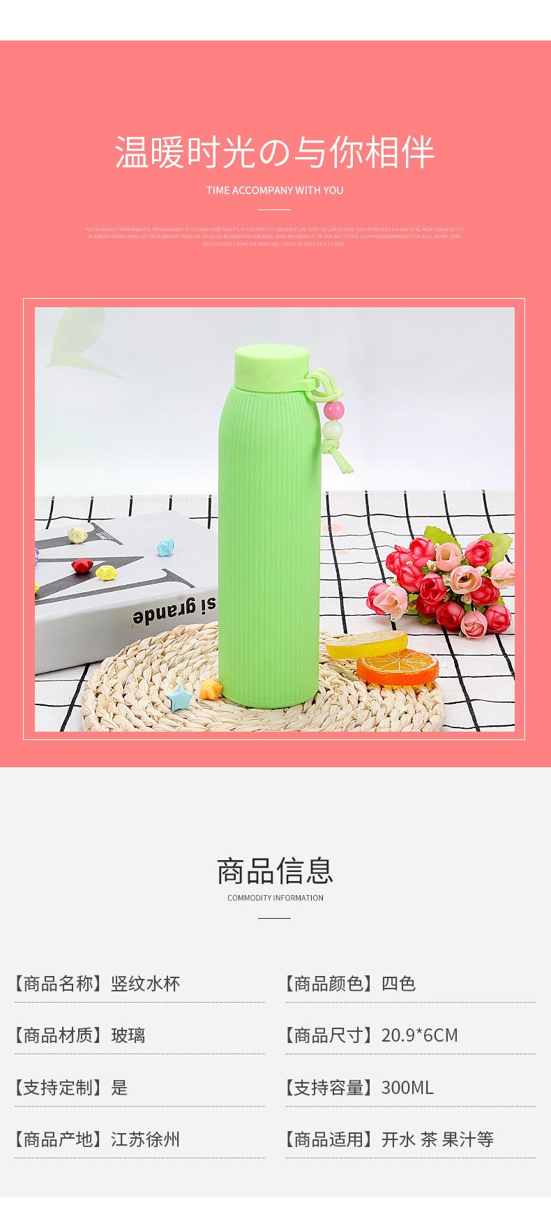 Fabricante de copo de água de vidro de cor pura com listras verticais, copo pequeno de água doce para estudantes, copo portátil, copo de promoção de publicidade