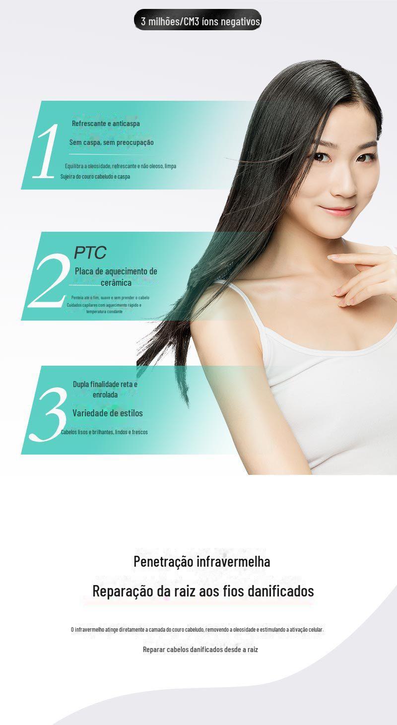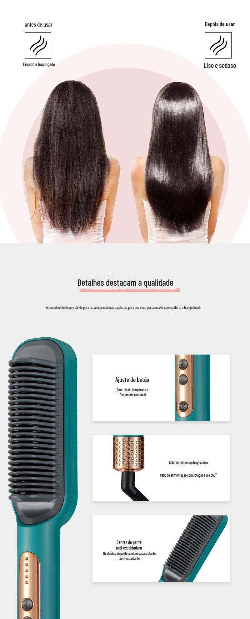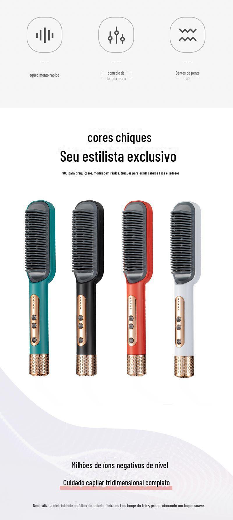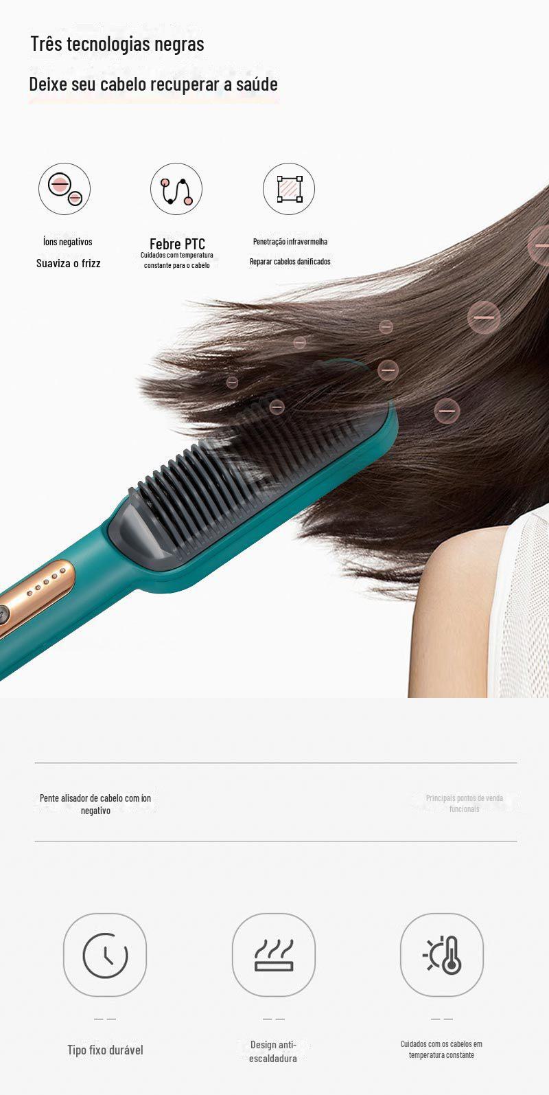 O pacote inclui: um alisador de cabelo, um manual de instruções em inglês